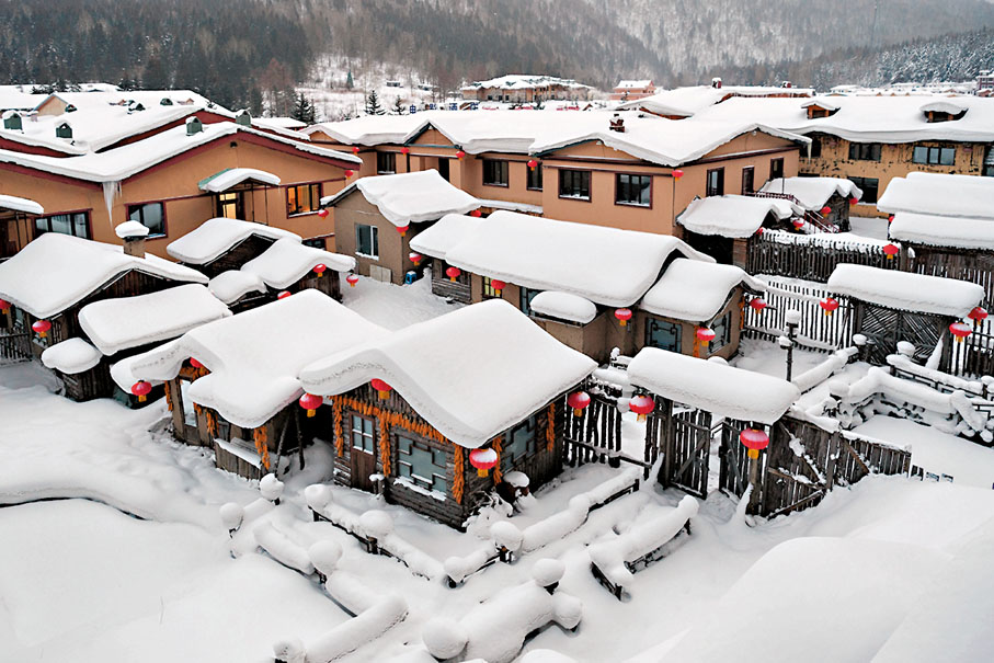 位於黑龍江省海林市的雪鄉景區,早前正式開園,冬季雪期長達約7個月。這個中國雪鄉旅遊風景區原為大海林林業局雙峰林場場部,這裏的雪量大、雪質黏、雪期長,特殊的地理位置和氣候條件使雪鄉的雪資源得天獨厚。由於受老禿頂子山、大禿頂子山、雲龍山三座高山阻隔,北上的日本海暖濕氣流與南下的貝加爾湖冷空氣在此頻繁交匯,形成了降雪豐富的獨特氣候。這裏的木屋錯落有致,綿密的積雪覆蓋萬物,形成「雪簾」、「雪蘑菇」等獨特景致,吸引全國各地的遊客前來賞雪遊玩。