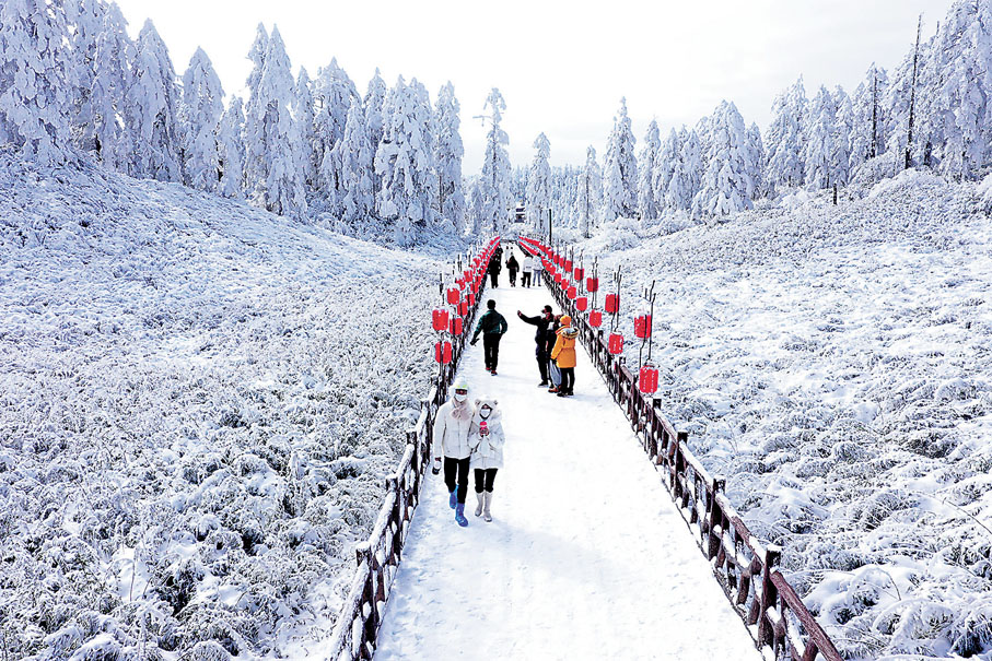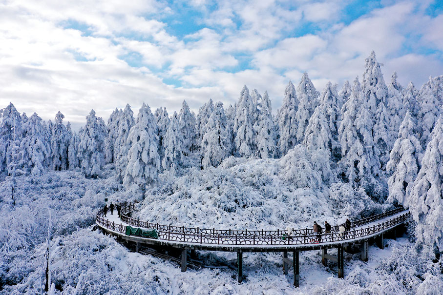 早前,位於四川省眉山市洪雅縣的瓦屋山迎來多場降雪,皚皚白雪將瓦屋山裝扮得銀裝素裹,宛如童話世界。瓦屋山是以開展森林旅遊、遊覽觀光、避暑消夏、尋古攬勝、探險獵奇、科學考察等的綜合性大型國家森林公園,當中如位於瓦屋山麓東北深坑溪畔的金花橋,是瓦屋山山門和遊客服務中心及瓦屋山居酒店所在地,以往有座用大杉樹拼搭成的木棧橋橫跨深坑河,兩側用穿榫的木枋做欄杆,遠看極似古時官帽上插的「金花」,所以稱為金花橋。
