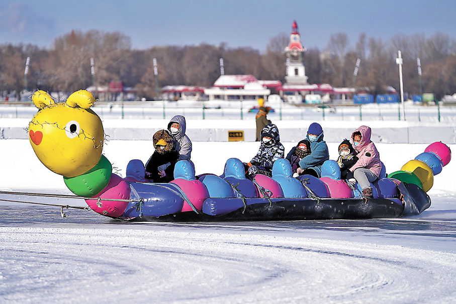 日前,位於黑龍江省哈爾濱市的第九屆全國大眾冰雪季主會場之一的松花江冰雪嘉年華正式啟動。松花江上,兒童雪滑梯、雪地排球、雪地足球、冰盤、冰球、冰壺、發光鞦韆、蹺蹺板、雪地陀螺、免費滑冰場等娛樂項目免費向公眾開放,喜愛冰雪的人們來到冰雪娛樂場所遊玩,感受冰雪運動的快樂。