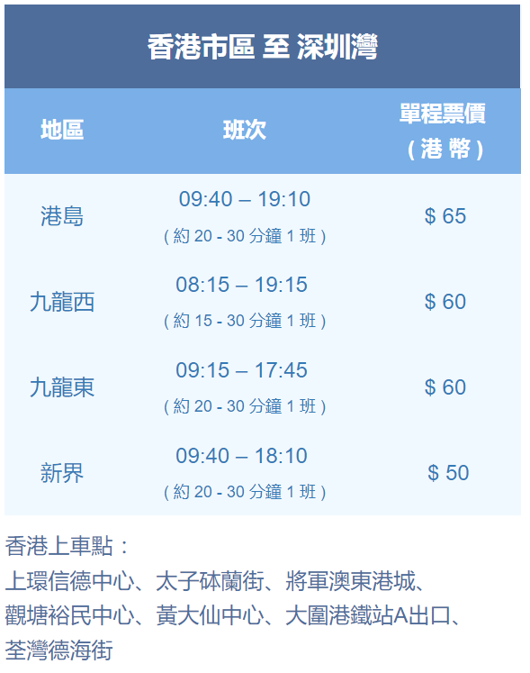 由香港往返深圳灣口岸的班次