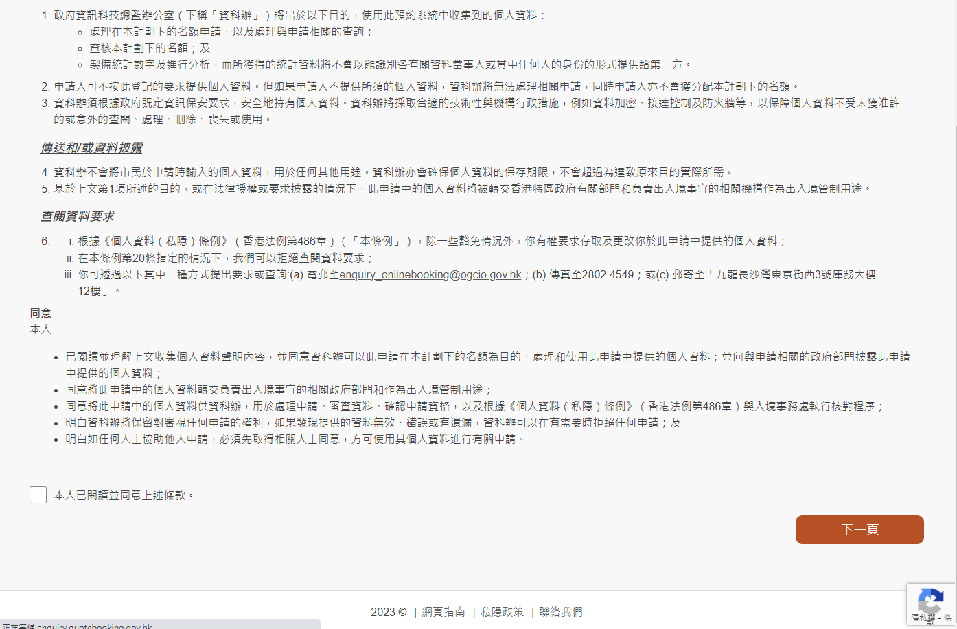 大公文匯全媒體記者在進行刷新後,等待了幾分鐘,才彈出登記頁面,需要同意「收集個人資料聲明」,才可以進行下一步。