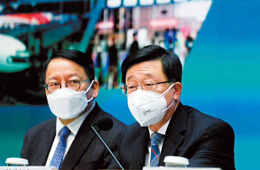 李家超昨日下午聯同多名司局長舉行記者會,宣布經與中央部委、廣東省及深圳市政府溝通協調達成共識,並獲得中央批准後,香港與內地將於1月8日起分階段有序恢復兩地人員正常往來。首階段涵蓋目前正在運作的香港國際機場、港珠澳大橋和深圳灣口岸,以及重開的港澳客輪碼頭、中國客運碼頭、文錦渡口岸和落馬洲支線/福田口岸,屆時每日會有各6萬個北上及南下配額。