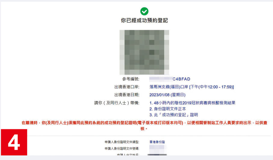 在填妥資料後,會出現一個綠色二維碼頁面,市民需要保存,離境時申請者及同行者必須攜帶預約成功的電子或紙本證明,向工作人員出示。昨晚9時許,記者再次嘗試登入預約過關網站,擁擠情況已大為緩解,不到1分鐘已能進入並填寫資料。