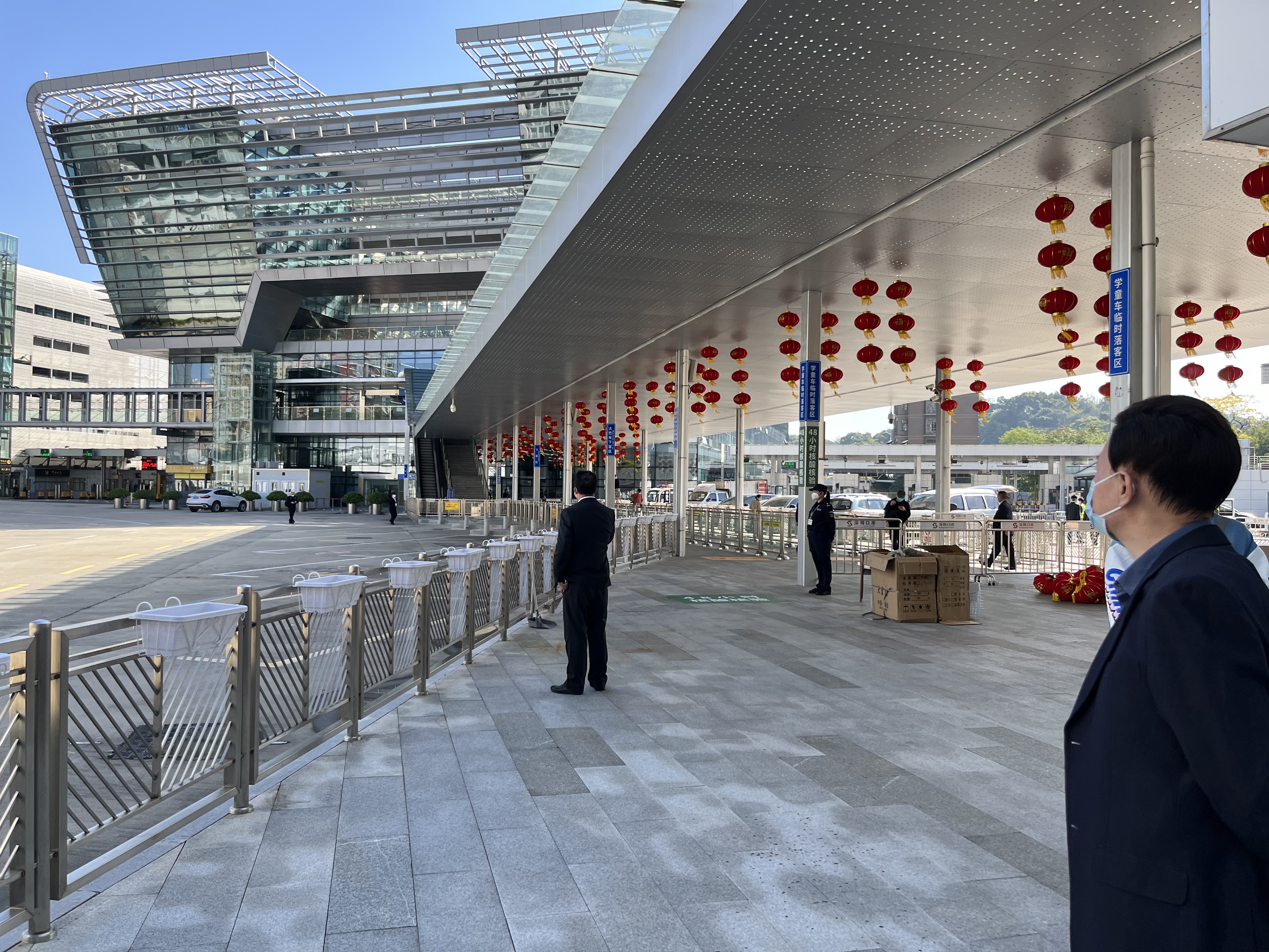 記者看到,臨近春節,各口岸還掛上紅燈籠,並精心裝點,營造喜慶氛圍。