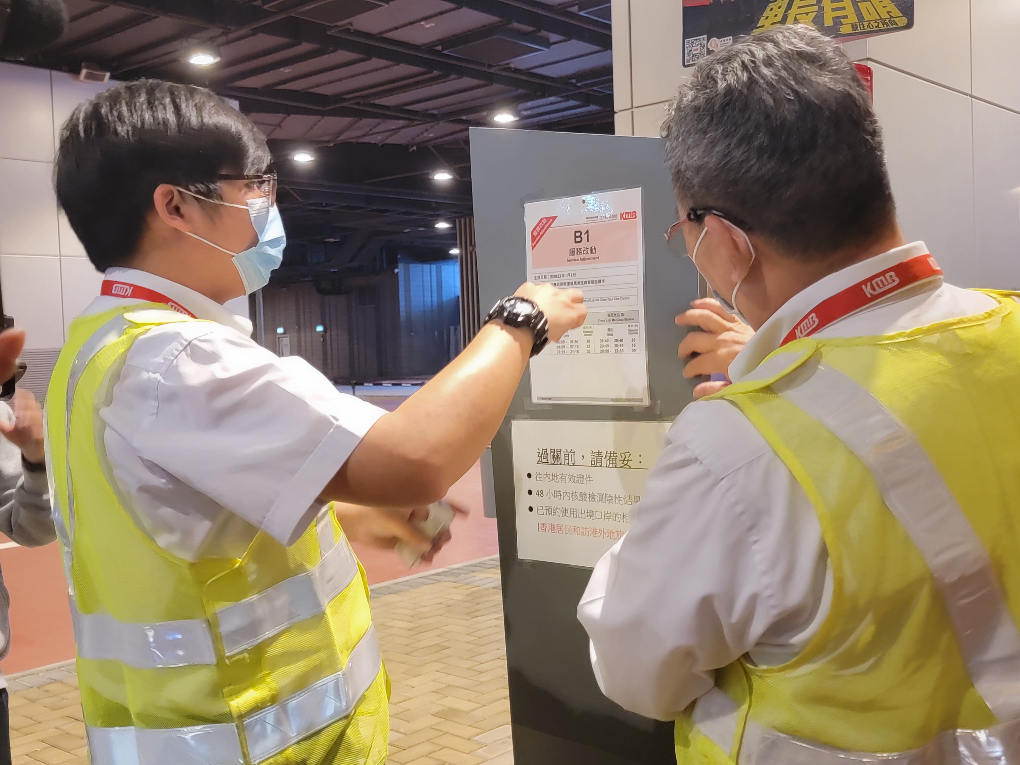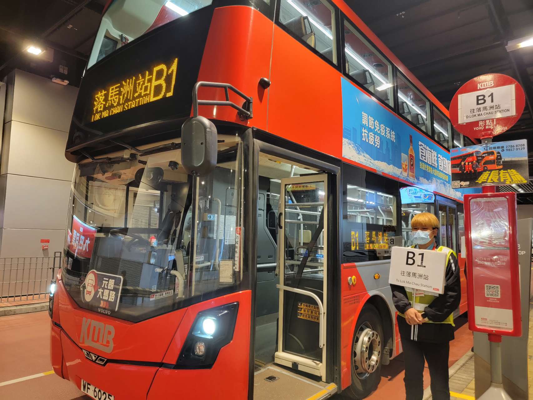 隨後記者到達元朗形點商場地下的B1巴士總站,九巴亦為通關巴士服務作準備。九巴傳訊及公共事務部主管簡學烯表示,往返天水圍、元朗的九巴B1線當天將重新提供服務,已準備9輛巴士投入B1線運作,繁忙時間的班次為約15分鐘,平時則約30分鐘一班,而由落馬洲開出的時間為早上6時60分至晚上10時25分,車程約20分鐘,九巴會在有需要時進一步加強B1線與多條路線服務。