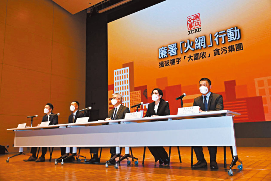 (香港文匯報記者 蕭景源)香港廉政公署日前憑一名市民的投訴舉報,於廉政行動中揪出一個大型樓宇維修貪污集團。廉署於1月4日展開代號「火網」行動,出動300人拘捕49名「大圍收」貪污集團成員,包括建築公司東主、工程顧問、工程承辦商及俗稱「維修老鼠」的中間人,以及法團主席、物管公司職員等維修工程持份者,涉及10個樓宇維修工程合約,金額總值超過5億元,個別項目涉過百萬元賄款。調查發現,貪污集團以中間人向各持份者行賄打通關節,串謀奪取樓宇維修工程合約的招標,並抬高工程費用10%至20%,作為受賄法團成員及其他持份者的「回佣」,及換取工程監督「手下留情」。換言之,業主不但支付高昂維修費,維修質量也難以得到保障。