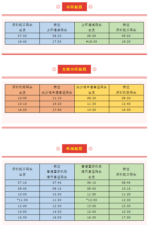 復航初期,計劃每日提供港澳碼頭往返深圳蛇口兩進兩出4個航班、中國客運碼頭往返深圳機場碼頭三進三出6個航班,並在短期內陸續恢復其他航線及加大航班密度。