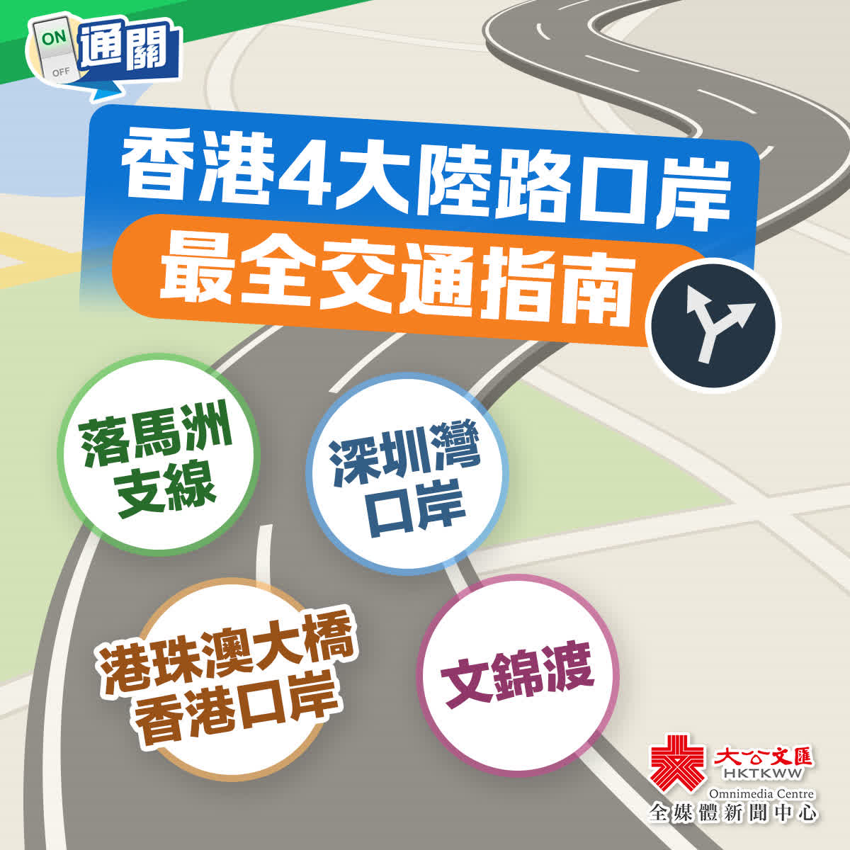 地鐵方面,目前除了深圳灣口岸尚未開通地鐵外,其餘口岸可分別在4/10號線福田口岸、9號線文錦以及12號線太子灣地鐵站乘坐地鐵。公交方面,各口岸均配有多條公交線路服務,均可聯繫全市主要出行熱點。其中深圳灣口岸16條、福田口岸8條、文錦渡口岸4條、蛇口郵輪母港4條。