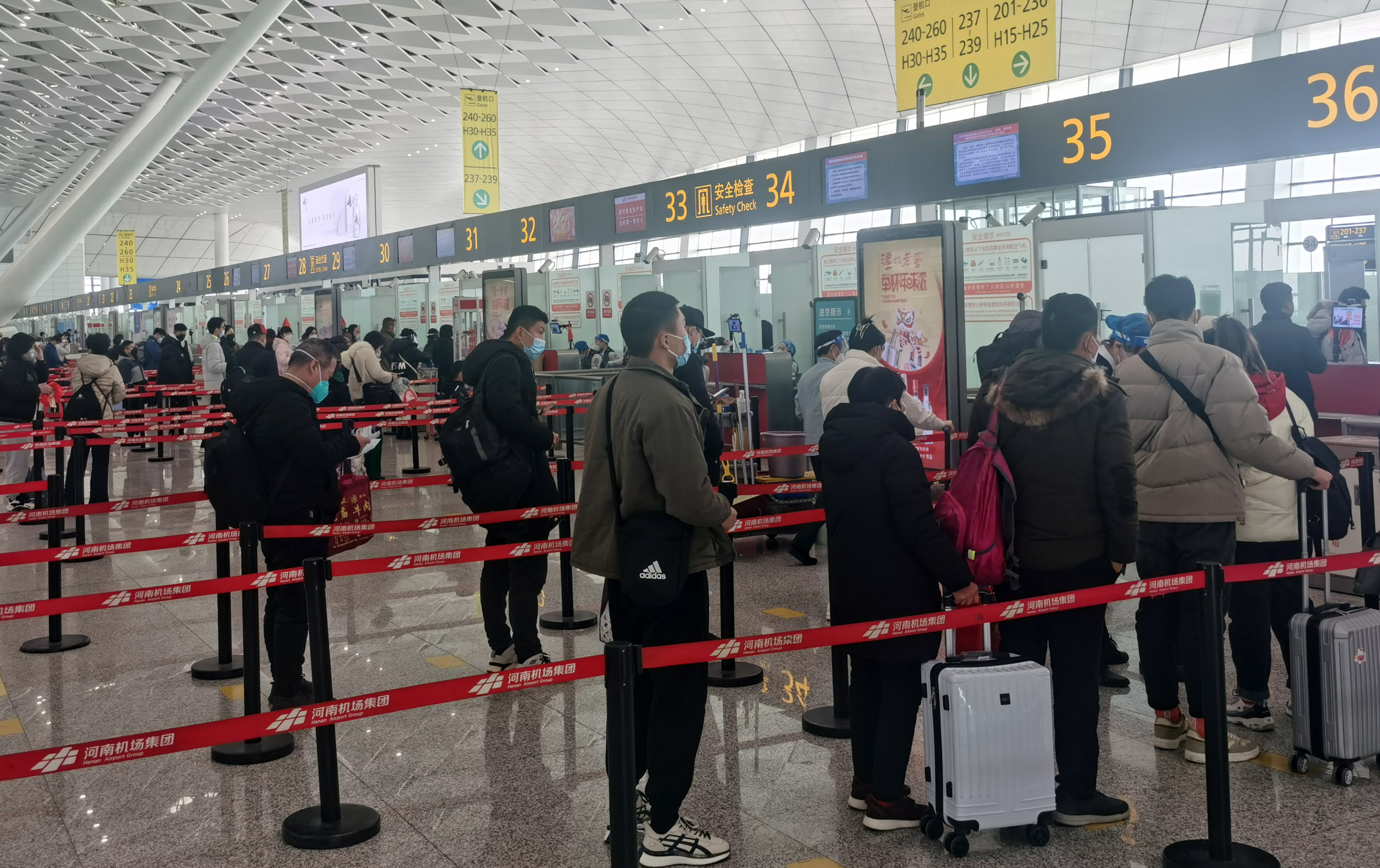為做好春運期間的旅客服務,鄭州機場制定春運專項工作方案,採取了一系列措施,加強公共區域清潔消殺與通風換氣、在旅客休息區增加服務設施和應急藥品、調配充裕的服務保障人員、根據客流變化及時加開值機櫃枱與安檢通道、進一步美化旅客候機環境等。