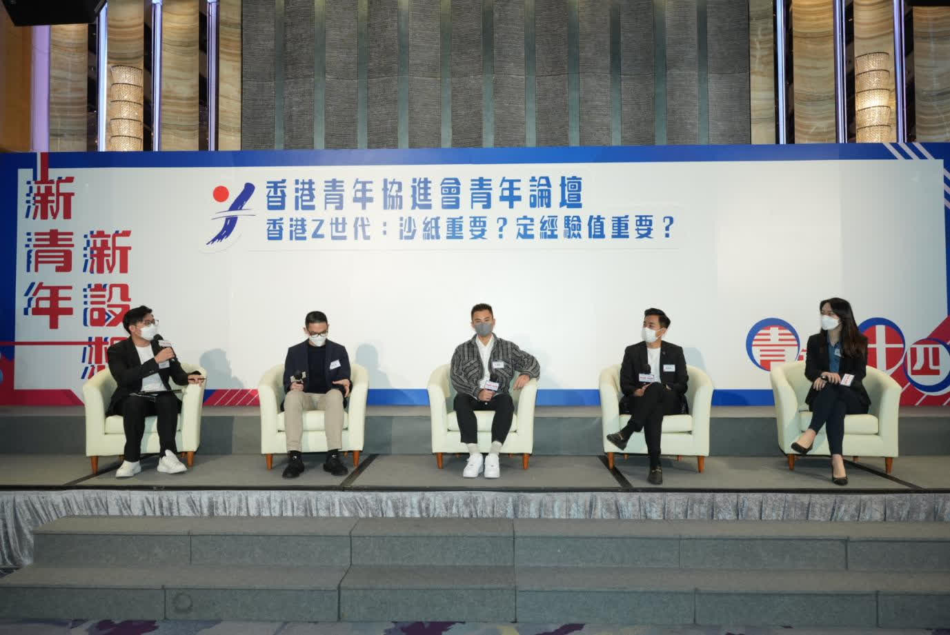 在典禮後舉辦的青年論壇上,廖永通、孔德賢、郭晁霖和劉芷而分別就住時下最熱門的職場議題:「究竟係沙紙重要,定係經驗值重要呢?」分享想法,探索幫助青年解決在學業、就業、創業和置業上面對的困難,助力青年向上流發展。