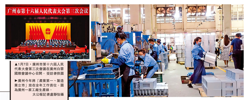 (大公報 記者 盧靜怡)疫後經濟復甦可期,廣州調高今年GDP增速目標。廣州市第十六屆人民代表大會第三次會議7日開幕,廣州市市長郭永航作政府工作報告時提出,2023年廣州市地區生產總值增長6%以上。該數據比去年GDP增速目標調高了0.5個百分點。公開資料顯示,目前內地已經公布GDP增速目標的十一個萬億GDP城市中,廣州是唯一一個調高GDP增速目標的城市。為實現這一目標,廣州提出今年將把「產業第一、製造業立市」放在全年工作首位,推動資源要素向實體經濟集聚、政策措施向實體經濟傾斜,並力爭全年投資總量突破1萬億元。
