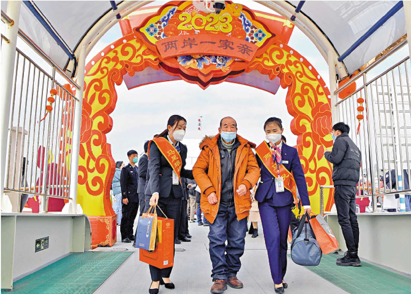 福州市台協會會長蔣佩琪及福建省、福州市台港澳辦工作人員,8日到福州碼頭迎接搭乘首班來榕的馬祖鄉親,向馬祖鄉親贈送福馬地區傳統年貨花生瓜子等,並致以新春祝福。在琅岐客運站站前廣場及碼頭周邊布置有大紅燈籠、中國結等,讓馬祖鄉親感受兩地共同歷史文化記憶中的家鄉年味。福州市方面還安排定製專線公交車,接駁馬祖鄉親前往福州市區等地,體現濃濃的「兩岸一家親」的親情。