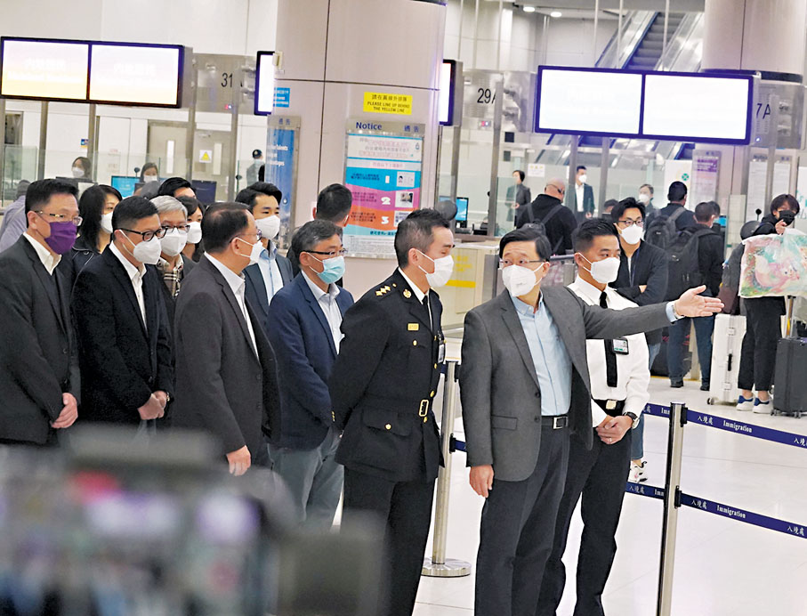 (香港文匯報 記者 文森)香港特區行政長官李家超昨早率同多名司局長到落馬洲支線管制站視察,了解香港與內地首日恢復免檢疫通關後市民過關情況。李家超指各口岸整體運作良好,市民過關流程暢順,強調通關必須要有序、安全、順暢,特區政府會密切留意情況,並與內地相關單位保持溝通,檢視春節前後安排以便作出整體部署,務求在穩妥可控形勢下盡快實現全面通關。消息指,港深兩地會在實施通關後一周內,不遲於本月15日會就首階段整體實施情況進行分析,在雙方達成一致意見基礎上,研究安排實施第二階段復常通關安排。