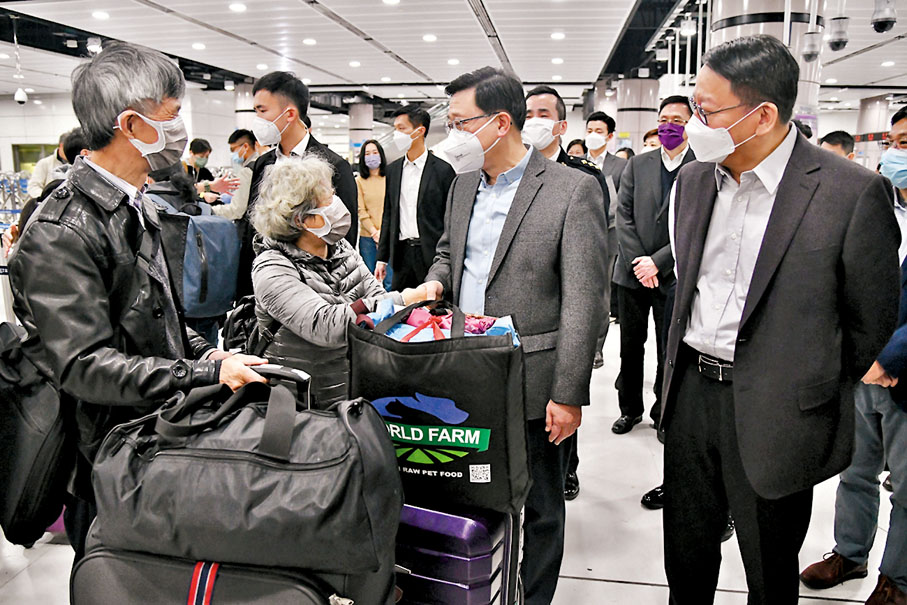 李家超說,昨日是首天恢復免檢疫通關,很多香港市民可能會在春節前後有安排,故要留意有關發展,視乎進度加大人數安排。