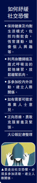 黎守信又指出,家長可多留意小朋友日常生活,例如有沒有準時返學、交齊功課,可有參加課餘活動,會否與同輩交往,及是否對生活失去動力,甚至睡眠受到影響等,當中都包括對情緒的反映。而學校亦可透過不同的社交活動及溝通技巧,讓學生建立人際關係,當中包括學校及班際活動,增加人與人之間的接觸。