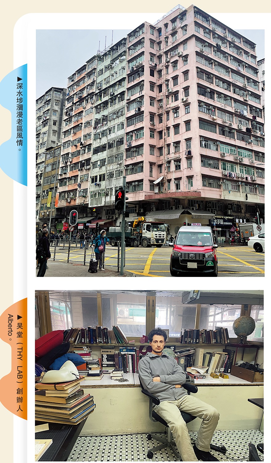 「2013年,我帶很多人參觀深水埗,發現非常多有趣的地方。但現在這些地方逐漸變少,取而代之的是愈來愈多的咖啡店,有點像所有國際城市統一的一種標準,但你無法評價舊的痕跡減少是對還是錯,好像那些標誌性的街頭招牌,因為時代太久遠,隨時有掉下來砸到路人的危險,這時候不拆掉的話,店主需要花一些成本來翻新這些招牌,但多數店主不會樂意做這些事情。」