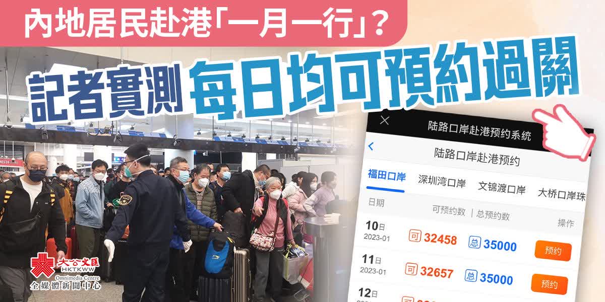 (大公文匯全媒體記者石華深圳報道)大公文匯全媒體記者今日(10日)從深圳市口岸辦獲悉,內地居民赴港每天可以預約名額。據深圳市口岸辦口岸通關管理處四級調研員陳遠強介紹,「政策在公布的時候就沒有30天只能預約赴港一次的要求,每天都可以預約。」
