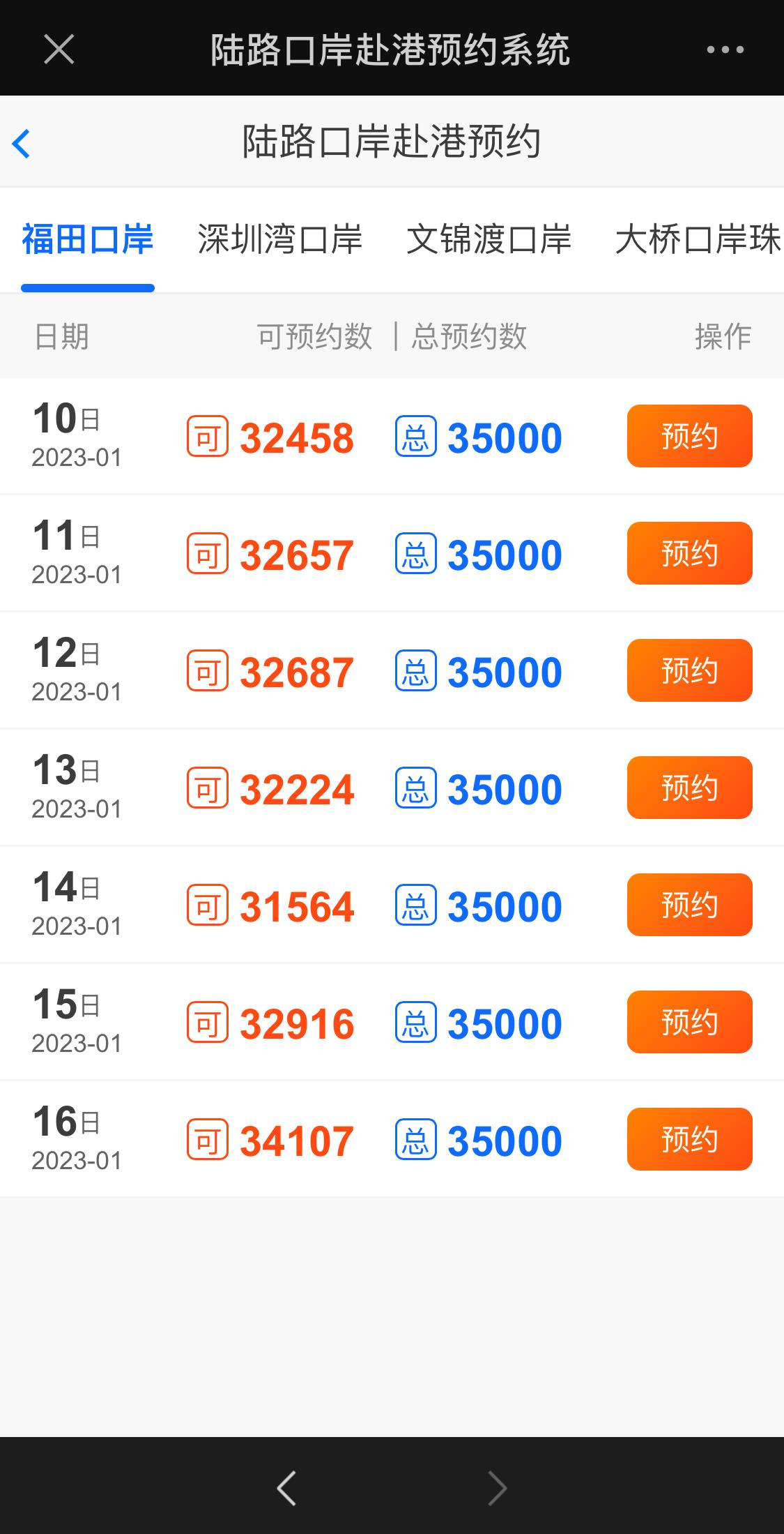 記者登錄「深圳市陸路口岸赴港預約系統」查詢發現,當天可預約10日到16日的通關名額,截止發稿時,各個時間段都有名額。