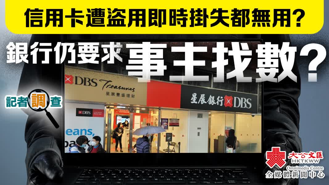(大公文匯全媒體 記者 馮沛賢)年近歲晚,涉金錢的罪案越來越多,犯罪分子賺錢手法層出不窮,大家要小心財物!不過大家又有沒有想過,信用卡會無緣無故被人盜用,就算及時向銀行及發卡公司申報,最終仍被銀行追究費用?大公文匯全媒體記者收到讀者蔡女士的投訴,怒斥星展銀行不負責任和推卸責任的情況。