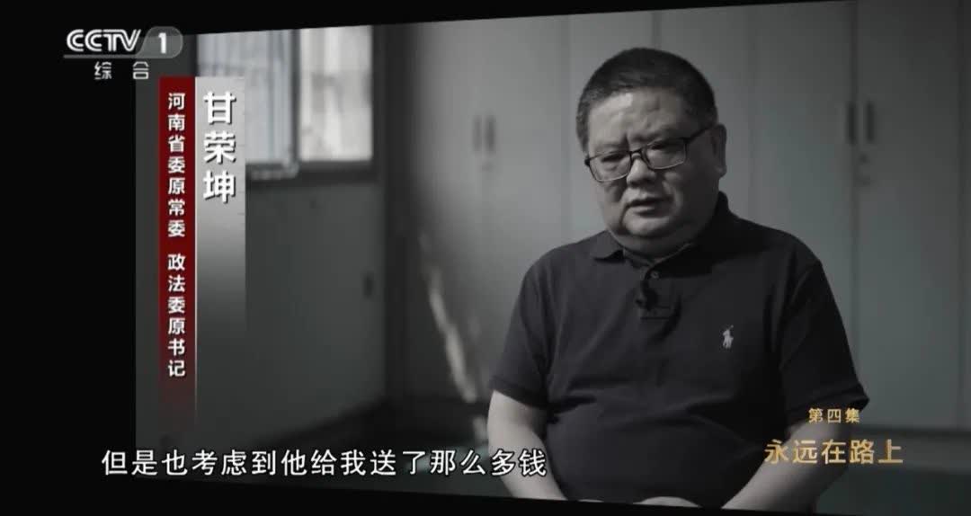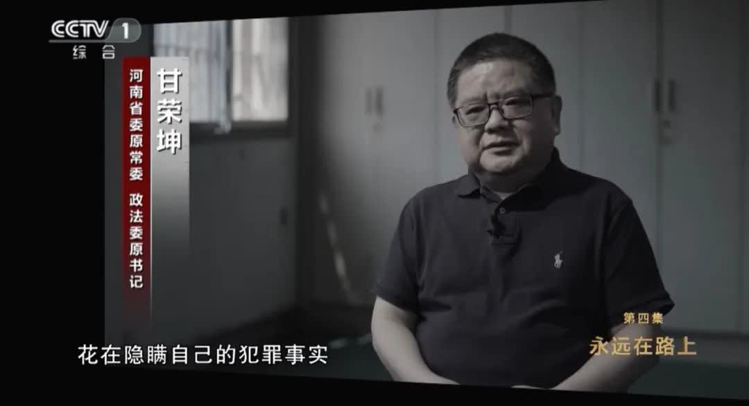 10日晚,由中央紀委國家監委宣傳部與中央廣播電視總台聯合攝製的四集電視專題片《永遠吹衝鋒號》第四集《永遠在路上》播出,片中披露了河南省委原常委、政法委原書記甘榮坤一案的細節。