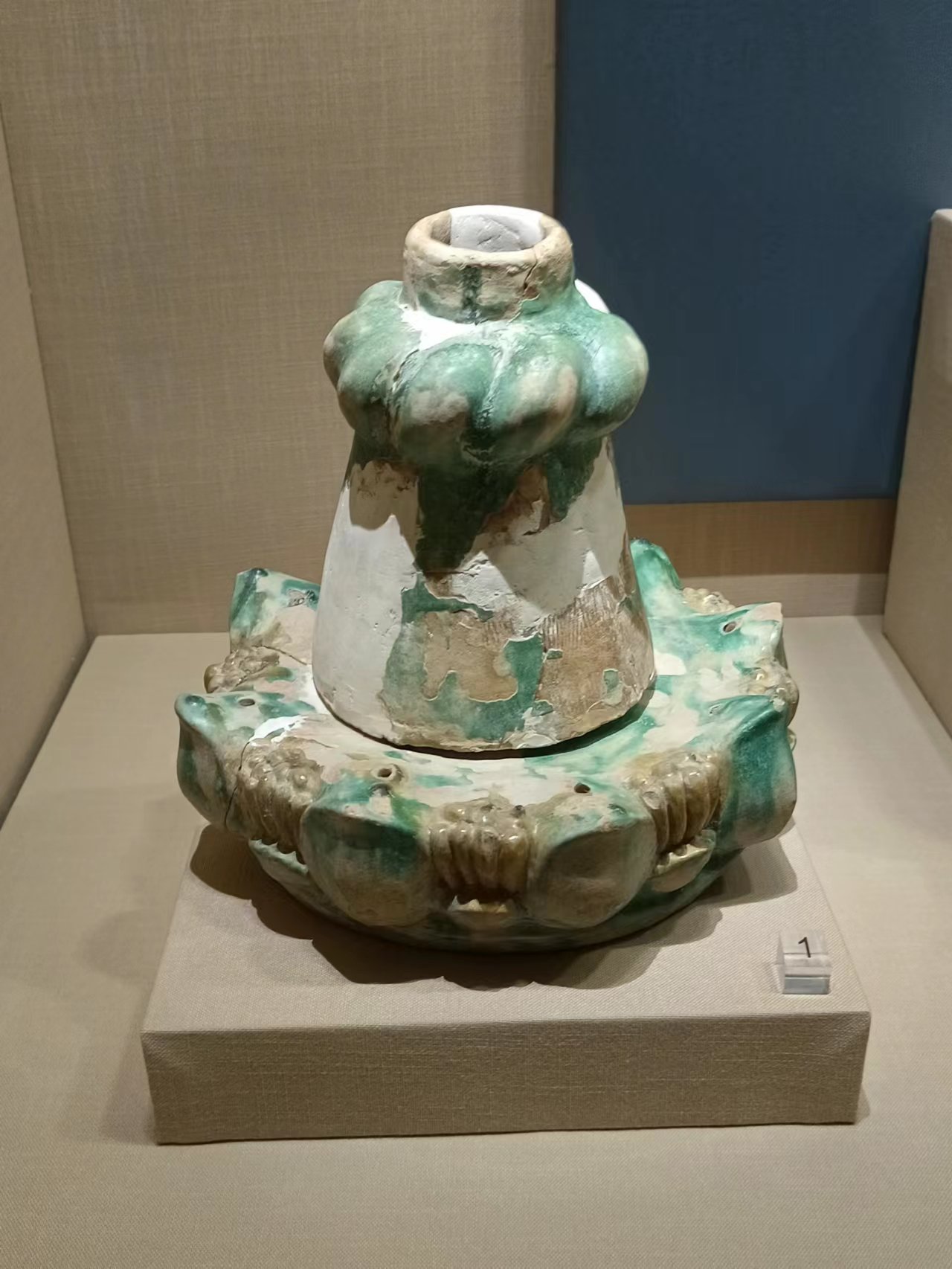 據寧夏西夏博物館館長王忠介紹,「西夏滅亡時期,文物、典籍俱遭破壞,掩埋於歷史的塵埃。近年來,隨着西夏故地考古工作的不斷深入,大量文物的出土,研究領域的日益拓寬,為人們復原西夏歷史創造了契機,提供了依據,西夏的文字、建築、文物都從不同的側面真實而立體的揭示了當時的社會文明背景、經濟生活、文化藝術,使神秘的西夏文明在世人面前越發清晰,本次展覽主要集中了寧夏回族自治區自新中國成立以來考古發掘的西夏文物精品一百餘件,那形態獨特的西夏文字、精巧工緻的瓷藝銅作、兼容並蓄的佛教藝術、氣勢恢弘的建築石刻……無不向我們展示着西夏的昔日輝煌。讓我們在這漫漫絲路,聆聽駝鈴叮噹,識物尋蹤,探訪神秘的西夏文明瑰寶,此次展出的彩繪擦擦,寧夏賀蘭縣拜寺口雙塔出土,「擦擦」是模製小泥佛和小泥塔俗稱為「擦擦」,常見的有高浮雕、淺浮雕和圓雕,均用凹型模具擠壓脫模,然後晒乾,有的再經燒制或彩繪。模製小泥佛和小泥塔是一種宗教聖物,多數作為佛塔或佛像腹腔的填充物。出土地點主要是西藏或古代藏傳佛教流行之地,西夏晚期,藏傳佛教很盛行。現存的西夏佛塔,多藏有小泥塔和小泥佛,還有展出的西夏琉璃剎頂寶蓋,寶瓶,隨着西夏的滅亡,政權的更迭,寺廟及塔群等級隨之降低,這裏逐漸衰落。以後沒有了妥善保護,被毀被盜就難以避 免,清理出來後,只看到綠色琉璃蓮花形寶蓋、寶瓶、滴 水、瓦當、脊獸等文物殘件,看到了已碎成方寸大小的白灰,看到了白灰上精美的彩繪和刻有西夏文的青磚。也許,就是這些 殘破不全的東西裏包藏着令世人感興趣的秘密。」