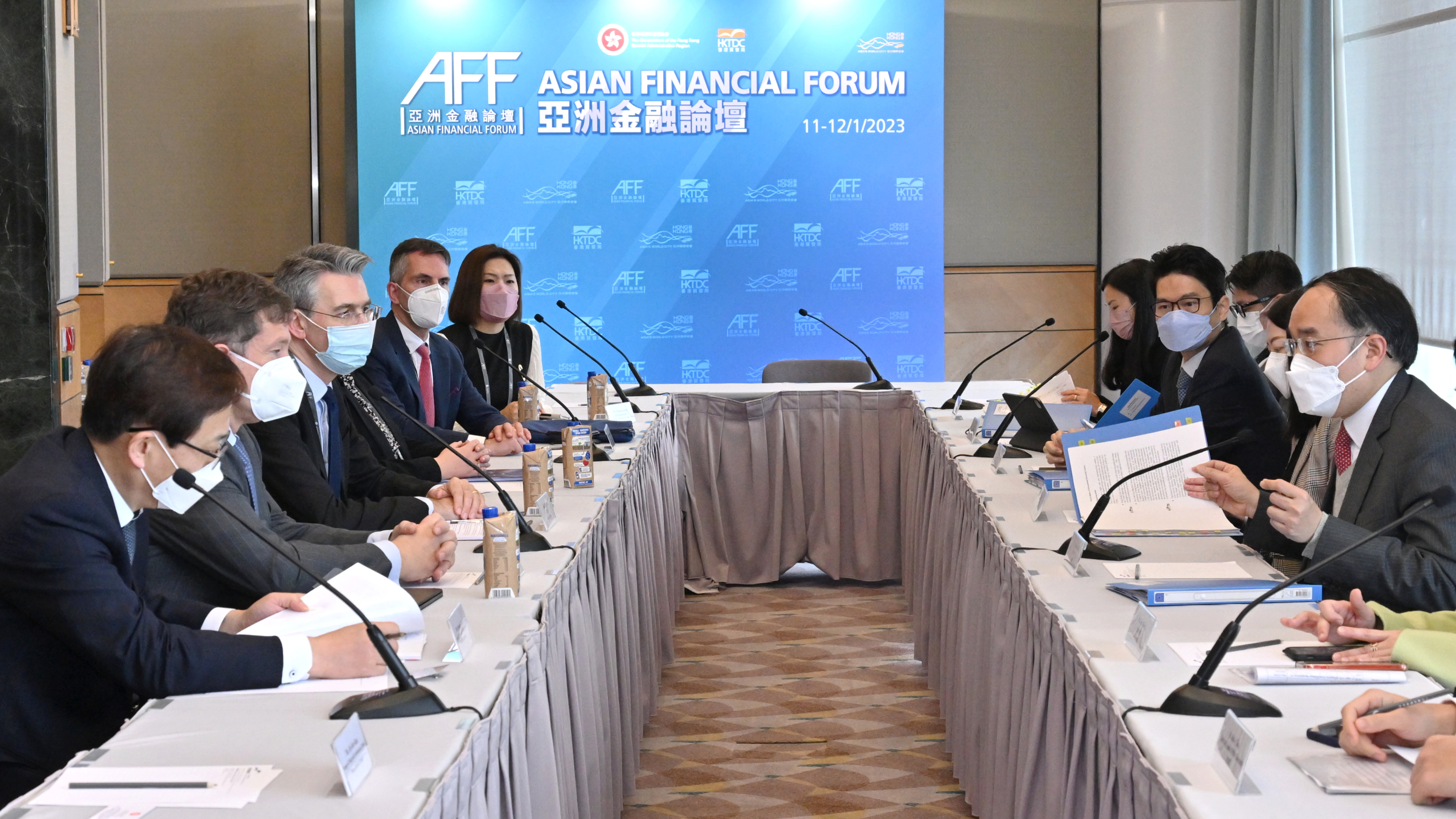 大公文匯全媒體報道,財經事務及庫務局局長許正宇今日(11日)在2023年亞洲金融論壇期間,與分別來自世界國際金融中心聯盟及新加坡商界的代表團會面,就全球金融格局趨勢、促進香港上市活動及加強知識共享方面的合作進行交流和討論。