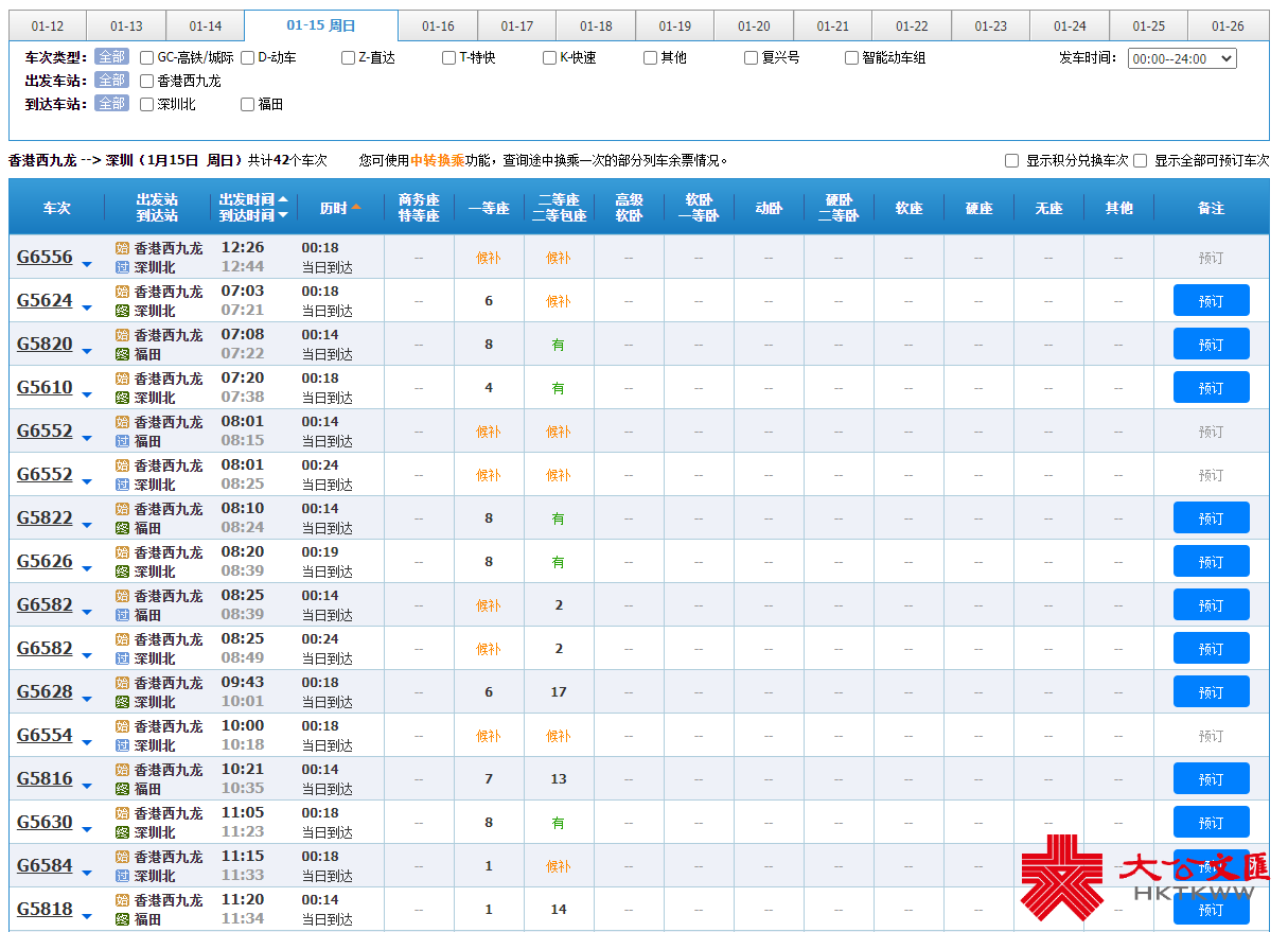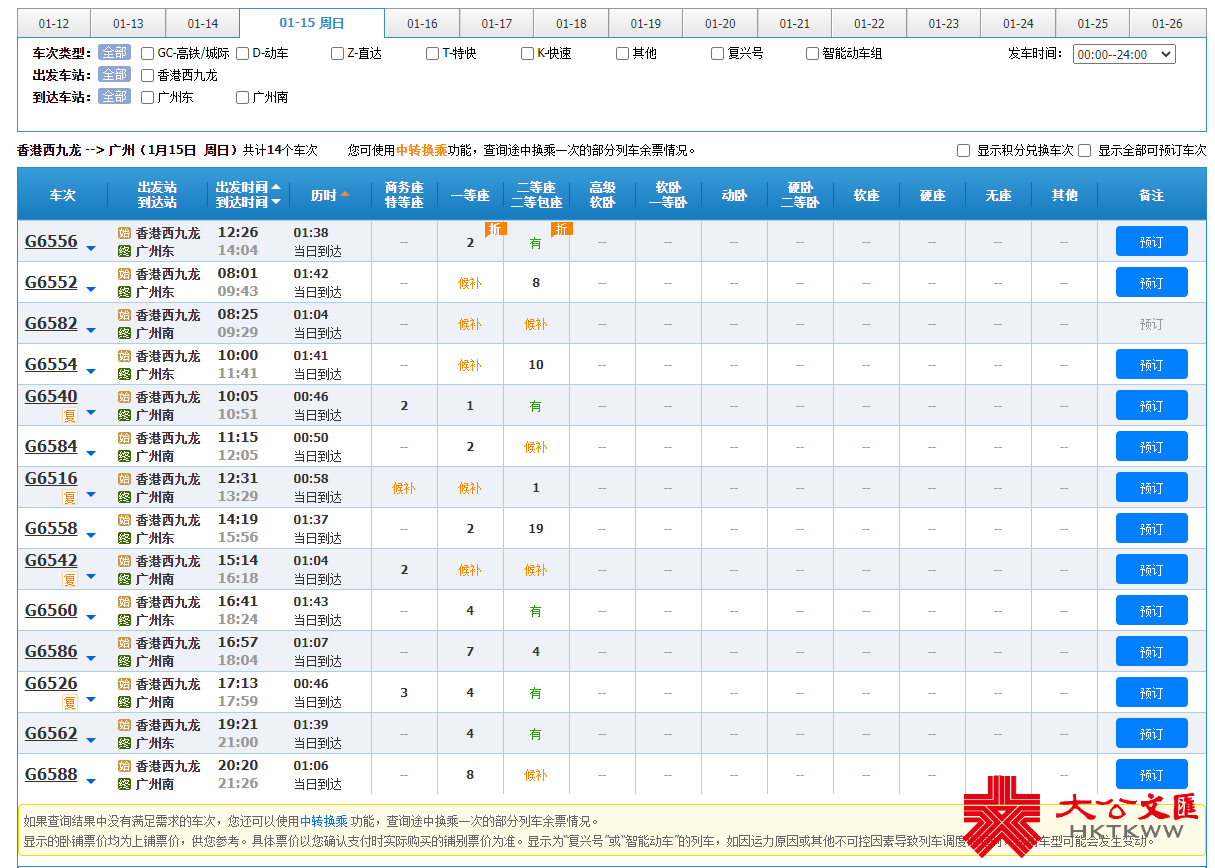 記者成功購買了1月15日早上西九龍經深圳北到達廣州東的高鐵票。記者發現當日西九龍至深圳北的列車有足夠餘票,反而是深圳到廣州的車票較短缺,僅買到無座票。