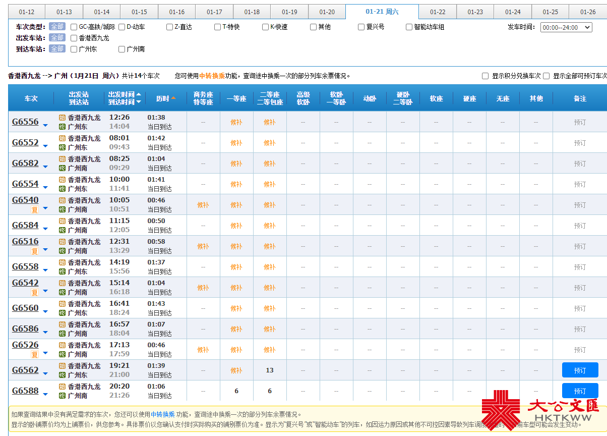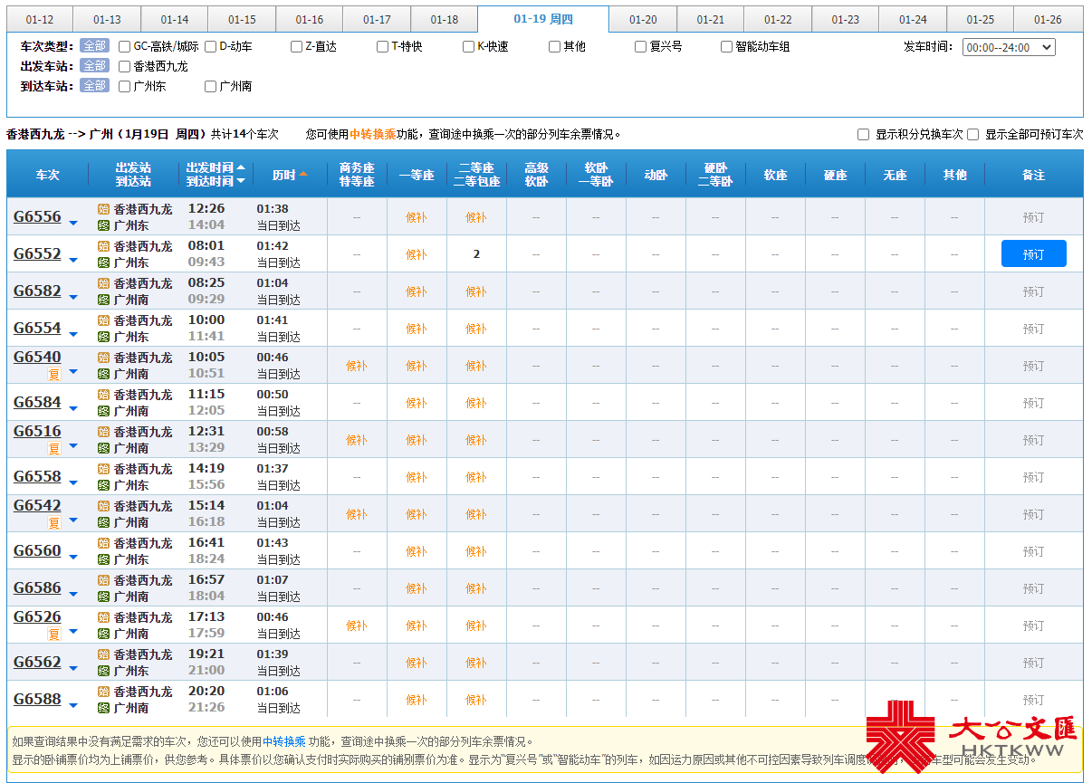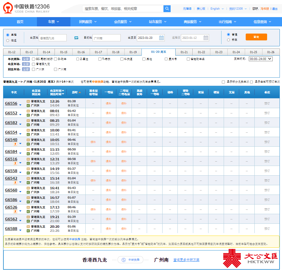 大公文匯全媒體記者今日進行購票實測,發現在12306網站購買香港西九龍至深圳以及廣州的高鐵車票,由於網站卡頓的原因,多數時間均無法顯示班次,需要多次刷新才能夠顯示班次。