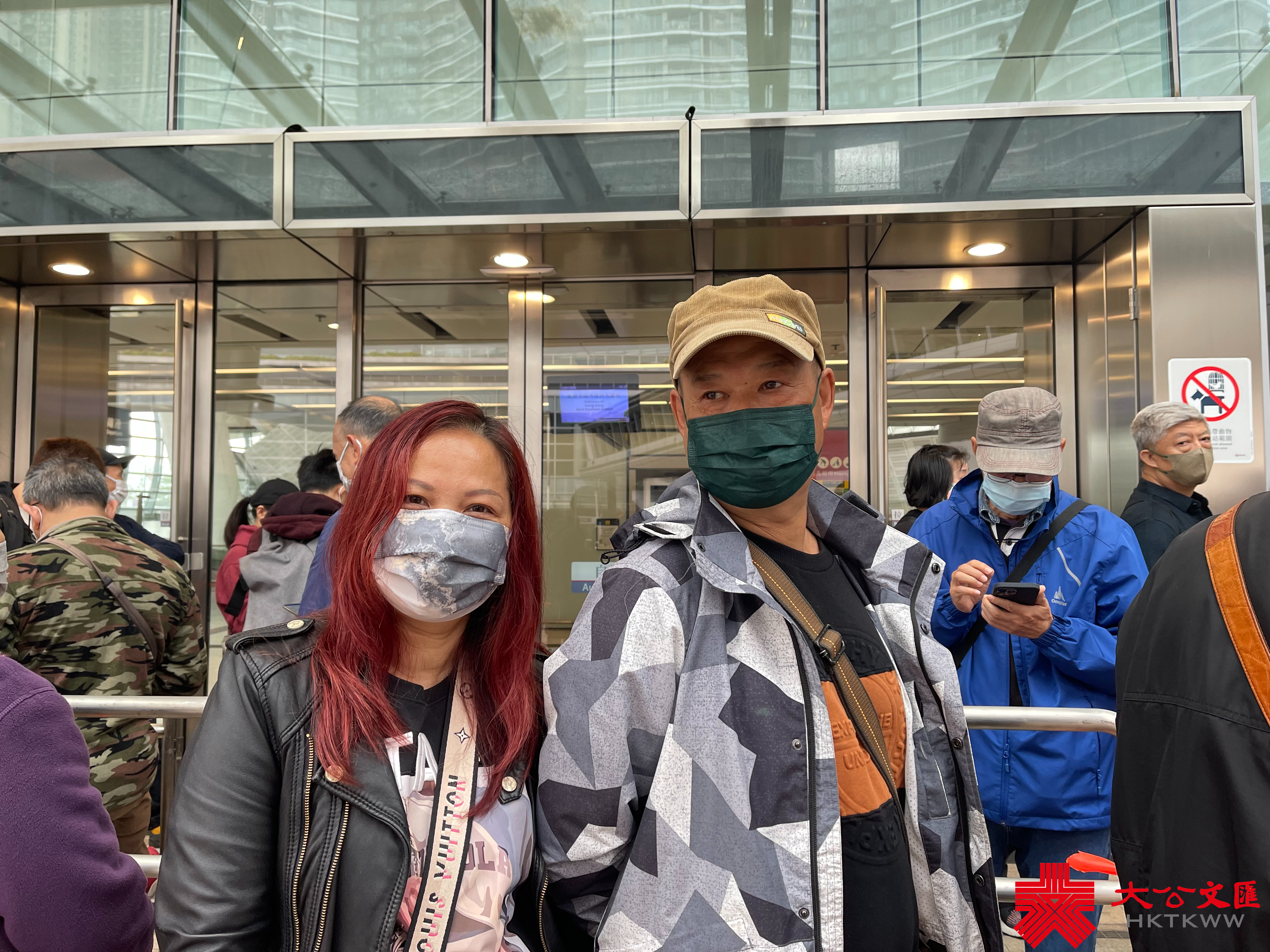 袁生袁太今天想買18日前往廣州的車票,但線上購票網站和應用程式一度被「逼爆」,夫妻二人就直接來排隊。儘管袁太前段時間剛剛回廣州探親,但因為香港與內地通關後更加便利,又適逢高鐵重新開通能夠直達廣州,大讚「最方便嘅交通工具就係高鐵」,於是想再回去過個團圓年。