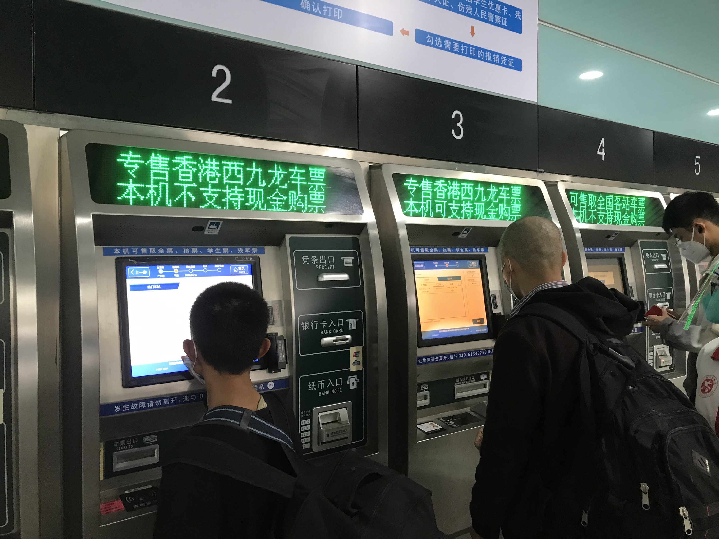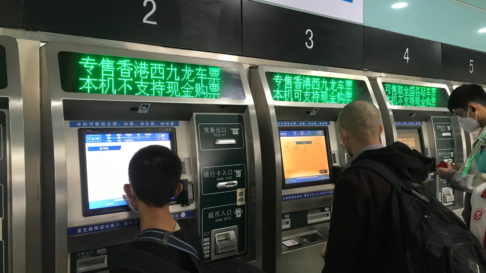 售票區亦有變化,有三台自助購票機已經用電子屏打出「專售香港西九龍車票」的字樣。記者看到,點擊「購票後」,頁面會顯示熱門方向的車站,在搜索欄搜索「XG」或者「XJL」等香港西九龍拼音的首字母,便可顯示「香港西九龍」字樣,點擊後可直接購票。