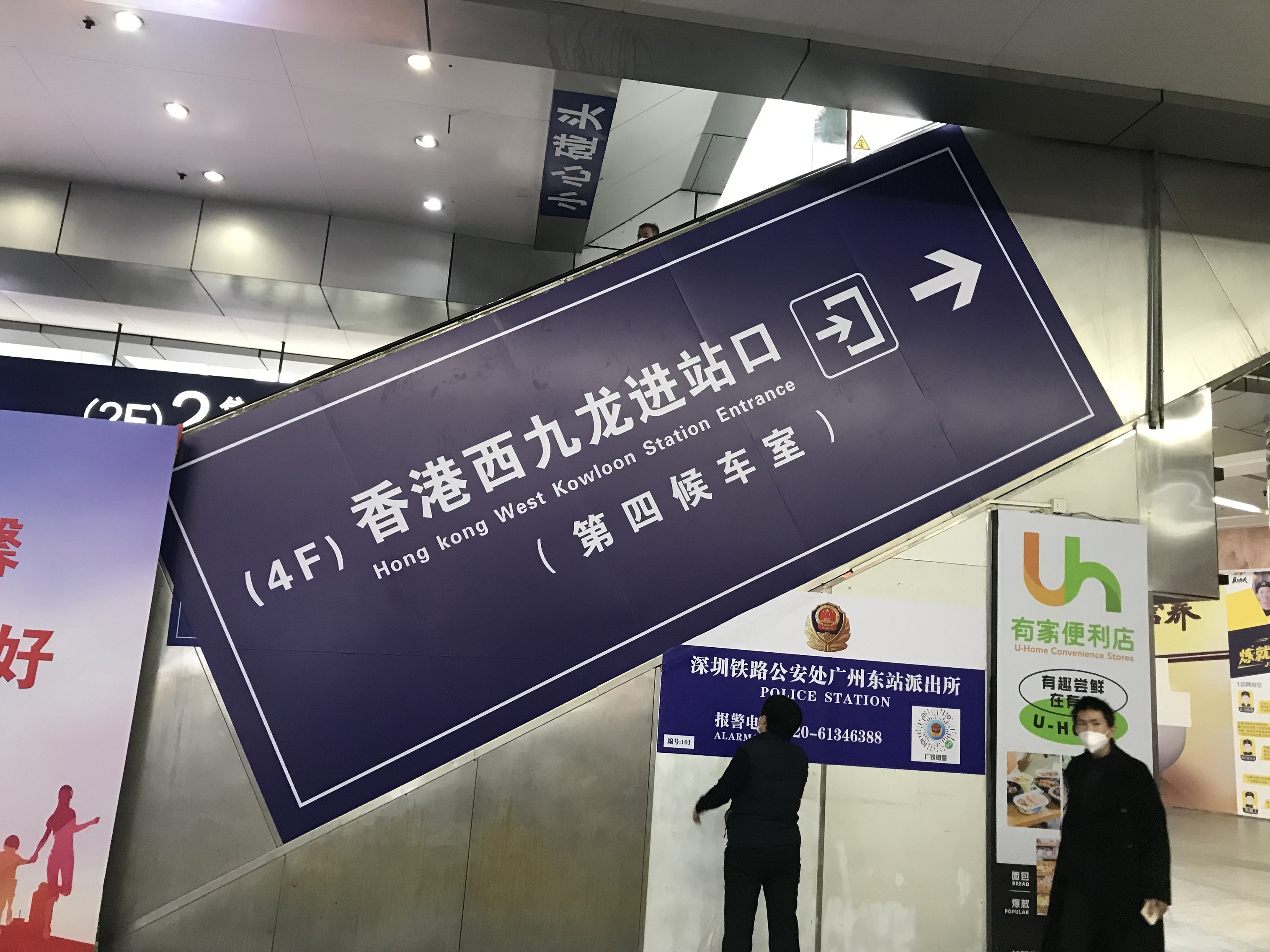 12日,包括設備調試、換乘指引張貼等在內,廣州東站的工作人員明顯增加。根據廣鐵工作人員介紹,廣州東站的香港西九龍方向候車室位於車站4樓,旅客進入車站區後,乘電梯或樓梯上到二樓。完成安檢後,前往長途列車乘車方向驗票,隨後再乘坐電梯前往4樓候車室。西九龍方向候車室為廣州東站第4候車室,而非此前廣九直通車所在的3樓。