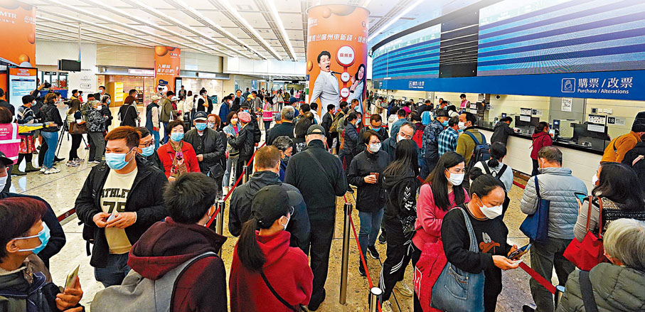 (香港文匯報記者 郭倩 文森)廣深港高鐵香港段將於後天小年夜(15日)復運,首階段最遠可直達廣州東,每日提供39班北行及38班南行的列車服務,南北行車票每日各5,000張,所有車票均為電子票。高鐵車票昨日中午12時起透過國鐵12306售票網發售;港鐵則於昨日下午2時起開放西九站予市民現場購票,售票前西九站外排隊購票的「龍尾」延伸至柯士甸站口附近。有成功購票的市民大讚「效率高、電子票更方便」;亦有仍在苦等的市民批評安排混亂,以及電子化服務沒顧及長者。截至晚上10時,首日共售賣逾3,000張復運首日北行的車票。