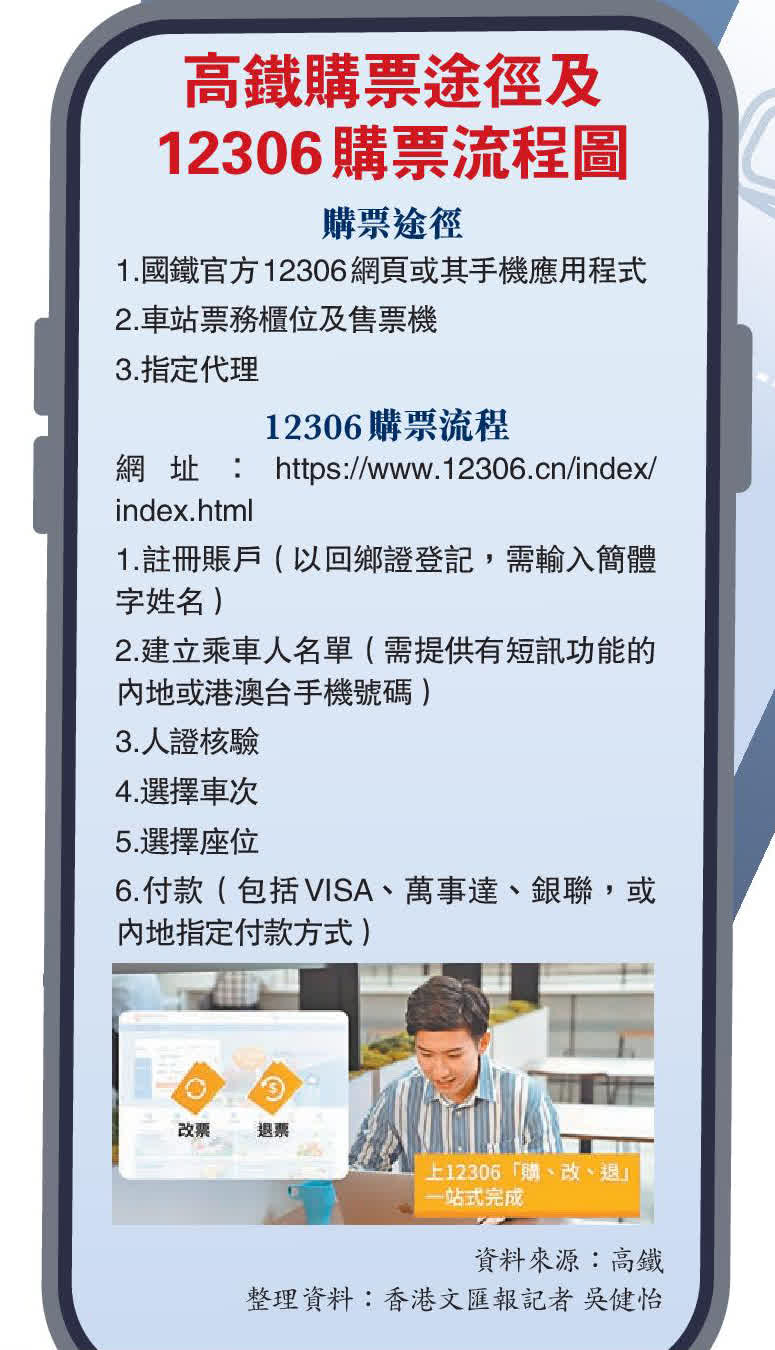 記者昨日在西九龍站採訪,不少巿民均表示曾嘗試使用「12306網站」購票,惟未能成功註冊才改為到車站排隊。有成功在內地用手機註冊賬戶的巿民對記者表示,在網上註冊賬戶、填寫個人資料後,手機在數秒內就收到驗證碼;然後要完成「人證核驗」程序,即以手機自拍進行人臉驗證才完成審核;若未以手機作人臉驗證,亦可到車站驗證。不過,西九龍站沒有人臉驗證的系統。