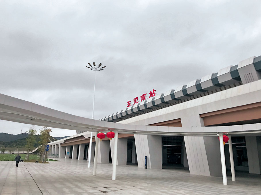 東莞站是廣州東站南下香港高鐵的第一站,根據最新的列車運行圖,兩站相距29分鐘車程。該站無縫對接巴士站、的士站和城市快巴,東莞地鐵2號線就位於站內。