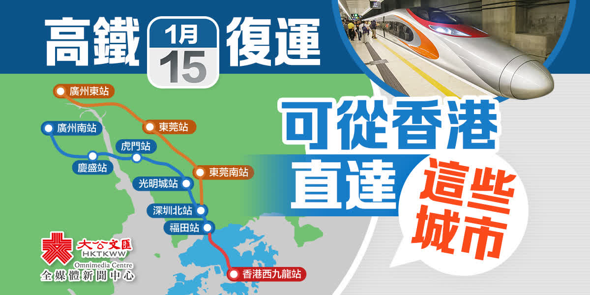 (大公文匯全媒體記者九皋整理)高鐵香港段本周日(15日)復運,途經福田、深圳北、廣州南、廣州東站,初期每日出售上限1萬張車票,北上及南下上限各5000張。闊別三年,不少市民對於高鐵的乘坐及過關的流程感到陌生,也提出了不少疑問。大公文匯全媒體整理了幾個常見疑問及對應解答,助你旅程更順利!
