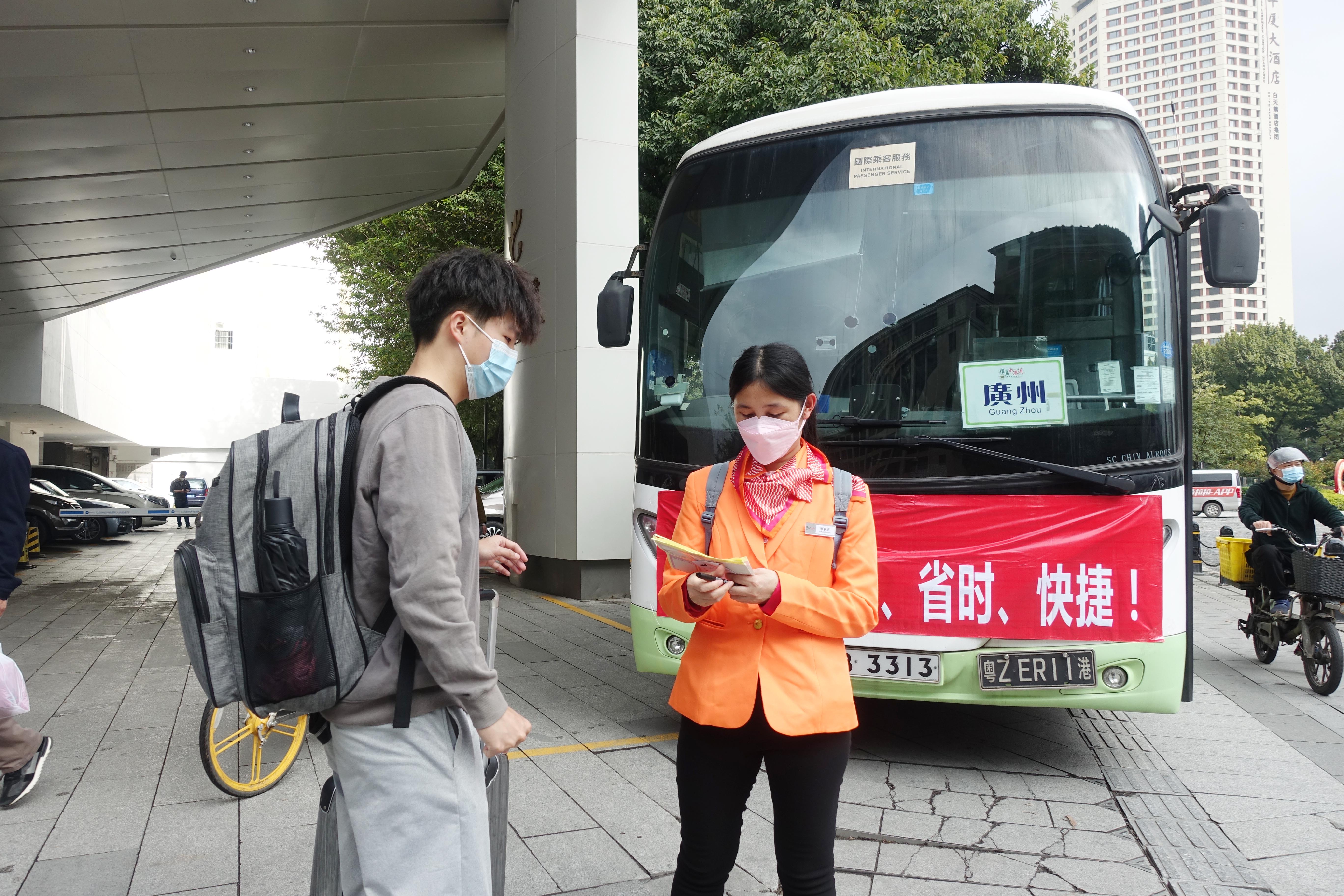預約直通巴士返港的港人羅小姐,8日香港和內地恢復通關後來廣州遊玩、看牙醫和親友見面,行程緊密。她很開心看到粵港直通長線巴士恢復運營。「8日從深圳過關回廣東其他城市始終會繞路 直通車恢復運營才真正感覺到兩地無阻隔。可以『點到點』回家,路線貼心很多。」她開心地告訴記者,這次從廣州回去,帶了廣州北京路附近有名的雞仔餅回港與朋友分享。羅小姐還建議,目前從內地回香港需要出示48小時核酸,但港人對核酸點如何查詢並不了解,當地指引並不清晰,希望能夠改善。