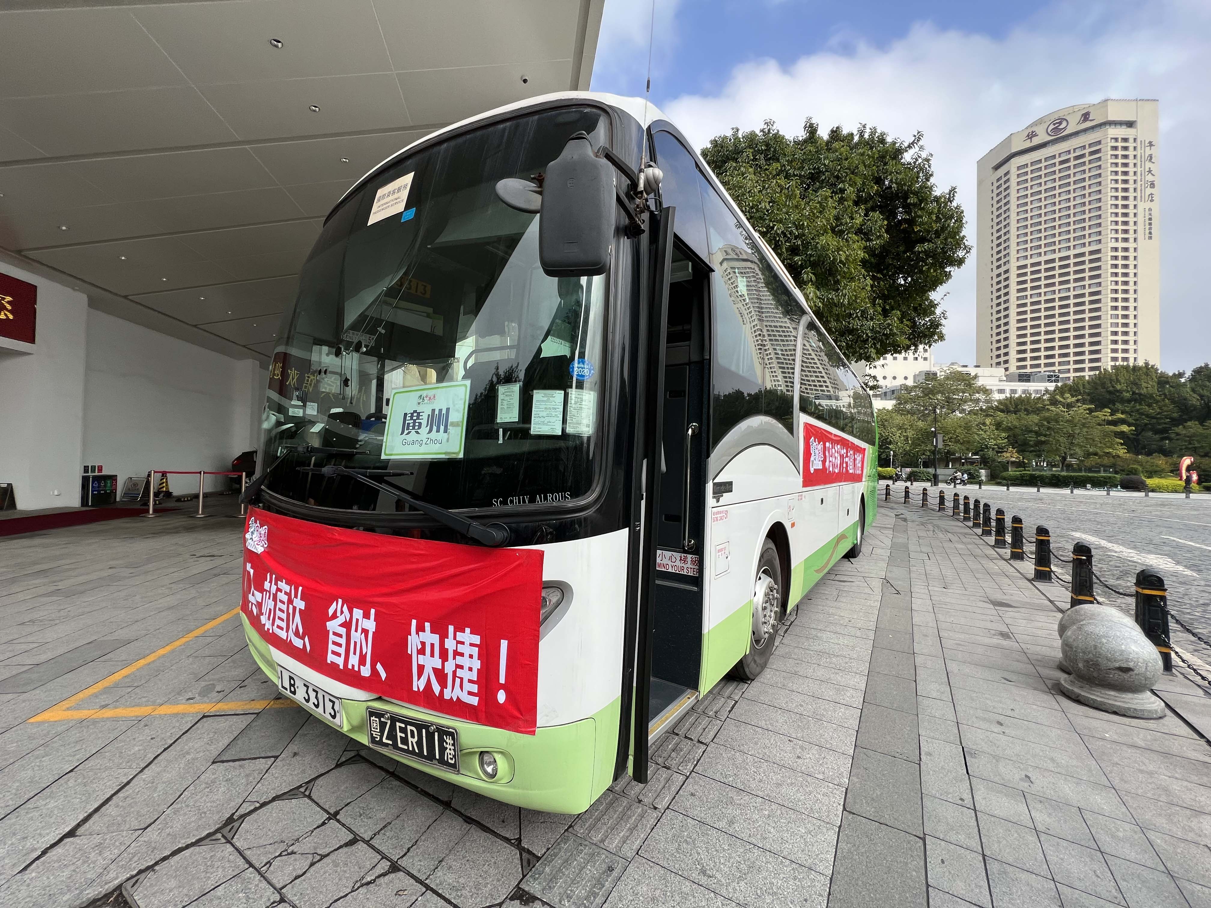 下午三點,從廣州賓館開出前往香港的直通巴士快線也啟程。香港青年莫先生在玻璃窗外再細看廣州的風景,心情十分舒暢。「我是通關後從香港過來廣州旅遊的,只帶了一個背包,『說走就走』。這幾天在廣州玩得很開心,試了很多美食。這次回香港沒想到預約到直通巴士的首趟車,還挺有紀念意義的。」莫先生說,以後通關措施進一步放寬後,不排除周末都會從香港到內地「短途游」,感受大灣區生活區的便利。