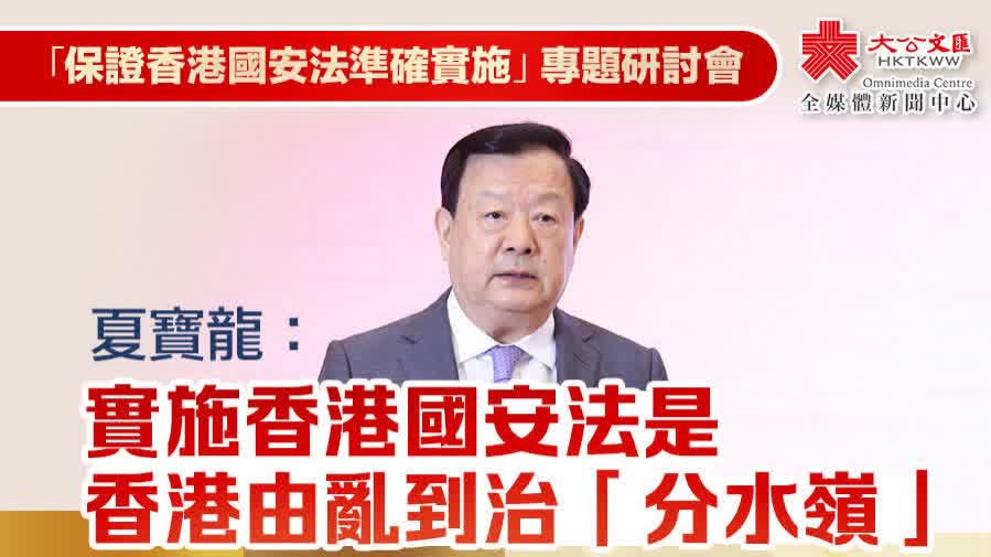 大公文匯全媒體報道,全國港澳研究會主辦的「保證香港國安法準確實施」專題研討會13日在北京舉行,全國政協副主席、國務院港澳事務辦公室主任夏寶龍出席研討會並致辭。夏寶龍表示,香港國安法護國安、保家安、得民心,已成為香港繁榮穩定的「守護神」。更好發揮香港國安法保駕護航作用,香港在中華民族偉大復興進程中必將大有可為、風光無限。