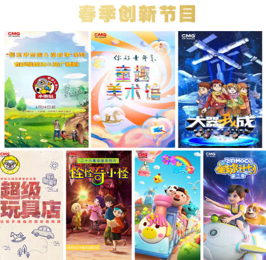 春季創新節目板塊,推出有聲融媒體兒童廣播劇《吳玉中奇趣兒童故事》,融媒體項目《你好,童年——童趣美術館》,季播節目《大器我成》《超級玩具店》,動畫片《怪怪奇小怪》《奇奇和努娜》《飛狗莫柯之星球計劃》7個創新節目。其中,百集廣播劇《吳玉中奇趣兒童故事》首次在少兒節目中應用總台自主研發的最新三維聲音技術「菁彩聲」,同步在「雲聽」客戶端「小喇叭」專區上線,帶給用戶沉浸式聲音體驗。