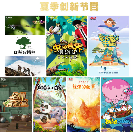 夏季創新節目板塊,推出季播節目《自然的詩篇》《蟲蟲世界漫遊記》《童心裏的中國》《名師有名堂》,動畫片《熊貓和小白象》《敦煌的故事》,動畫電影《潛艇總動員》7個創新節目。其中,總台體育青少節目中心與國家林草局合作的童趣文化節目《自然的詩篇》、國內首個應用微縮錄製技術的兒童奇幻科普劇《蟲蟲世界漫遊記》帶領小觀眾們走進自然,踐行環保,感受世界。