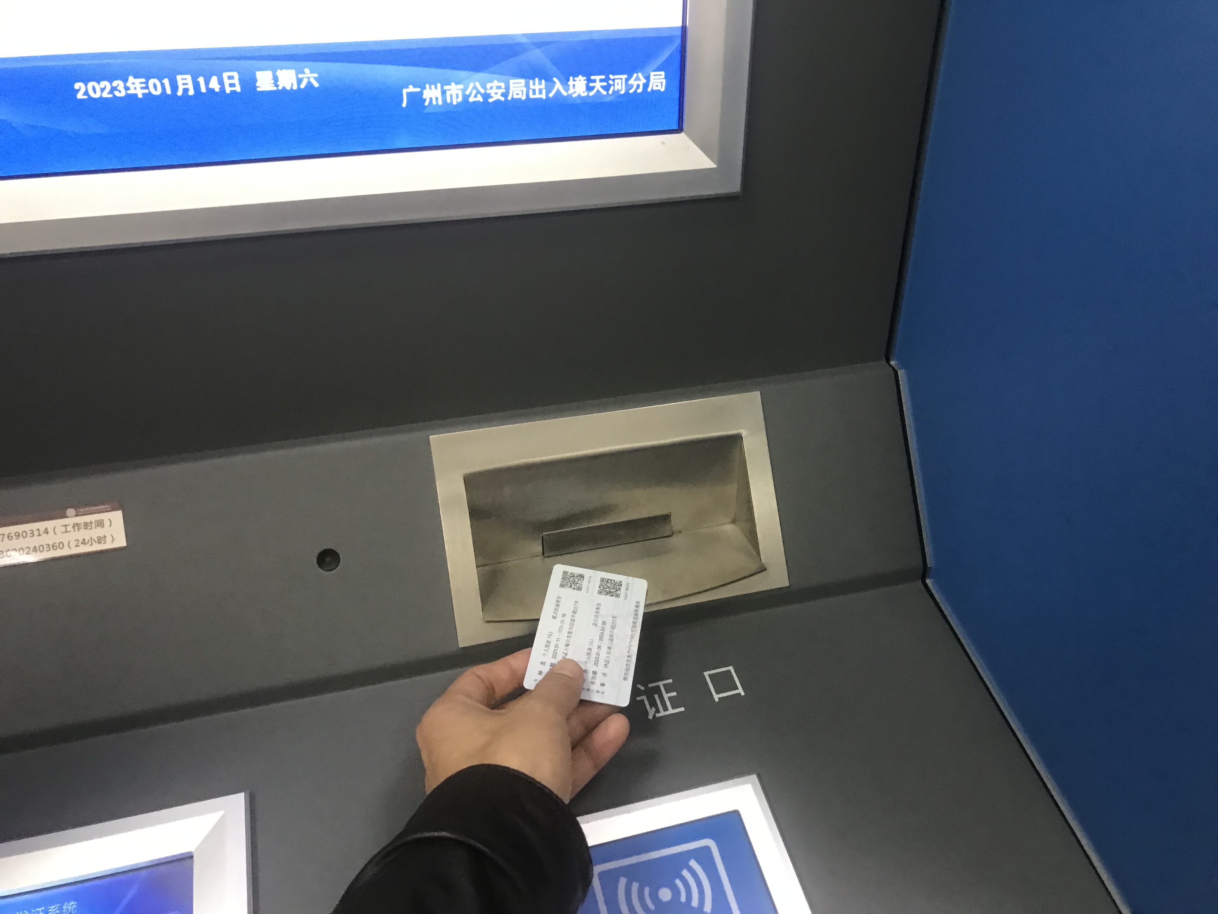 記者此前已經在1月9日成為廣州首批預約辦理赴港簽注的內地居民,13日上午,記者查詢獲悉,已可領取。14日上午9時,記者趕到此前預約辦證的天河區政務服務中心出入境業務大廳,憑身份證在「自助取證機」上取證,30秒左右證件即取到。