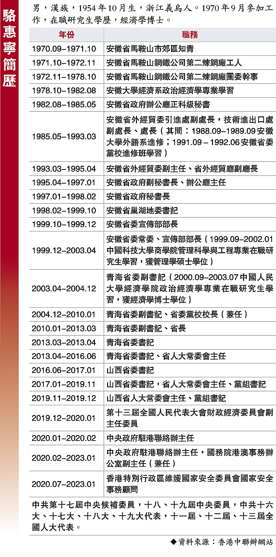 據中聯辦網站載,1月14日,中聯辦召開領導幹部會議,中央組織部副部長、中央編辦主任李小新出席會議並宣布中央決定,任命鄭雁雄為中央人民政府駐香港特別行政區聯絡辦公室主任、香港特別行政區維護國家安全委員會國家安全事務顧問,不再擔任中央人民政府駐香港特別行政區維護國家安全公署署長。駱惠寧不再擔任中央人民政府駐香港特別行政區聯絡辦公室主任、香港特別行政區維護國家安全委員會國家安全事務顧問、國務院港澳事務辦公室副主任。