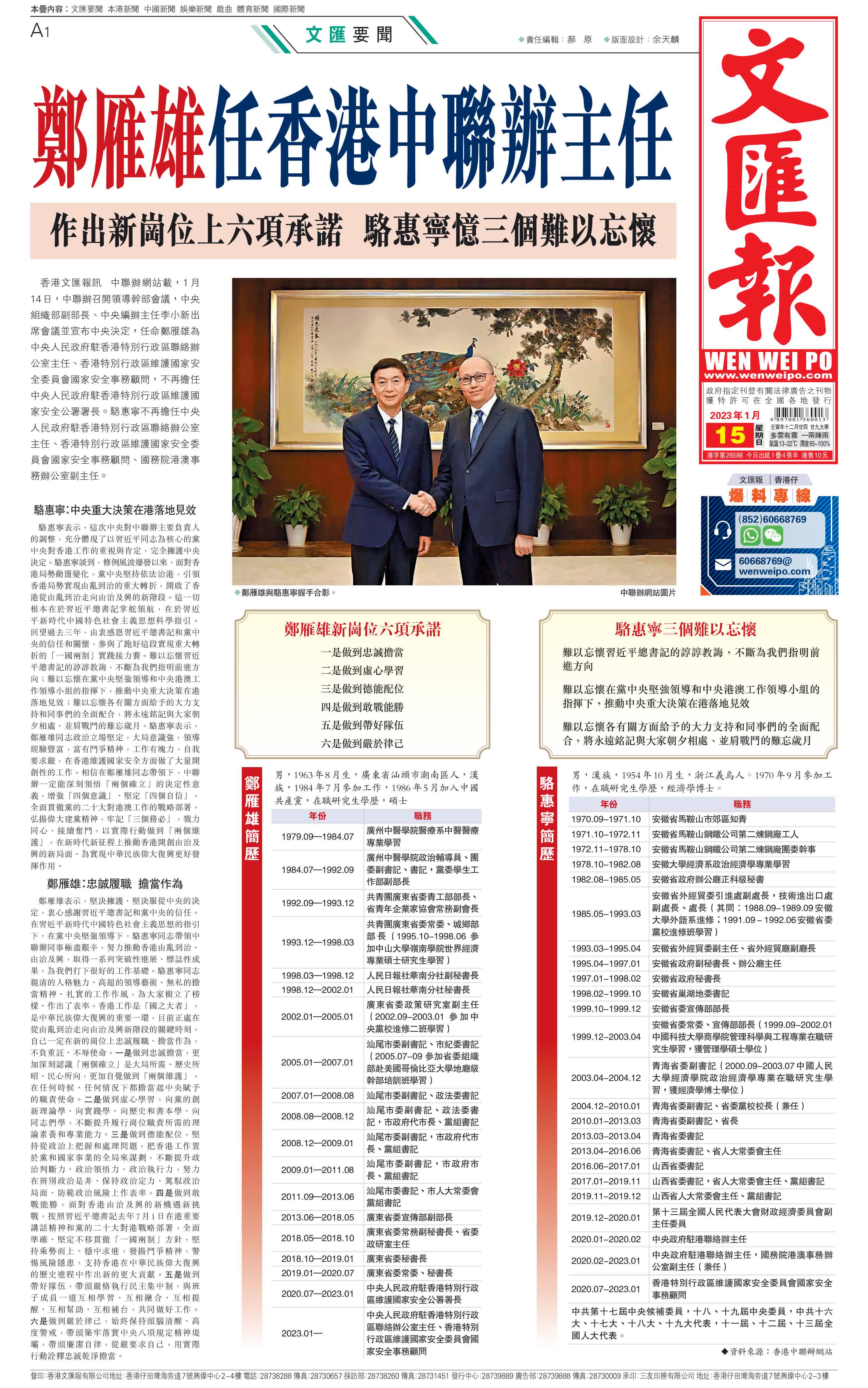 (來源:香港文匯報A01:要聞 2023/01/15)