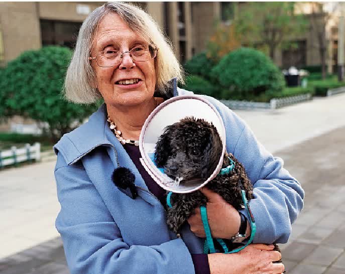 「喬治」是溫雅惠和乾孫女、袁志傑女兒Melody「合養」的寵物狗,她牽着「喬治」走在小區裏,鄰居們和她打着招呼。溫雅惠笑着說,有了「喬治」,她和鄰居們有了新的交流話題。