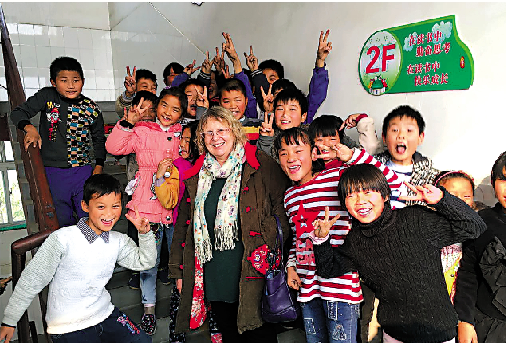 山東濰坊、菏澤、安丘,內蒙古翁旗、湖南張家界、河南原陽縣……溫雅惠已去過數百所中小學,特別是偏遠貧困地區的農村小學。她不僅給孩子們授課、送書,還自費購買復讀機等學習工具,義務培訓當地的英語老師。截至目前,她已為這些學校捐贈了數萬本英語圖書。