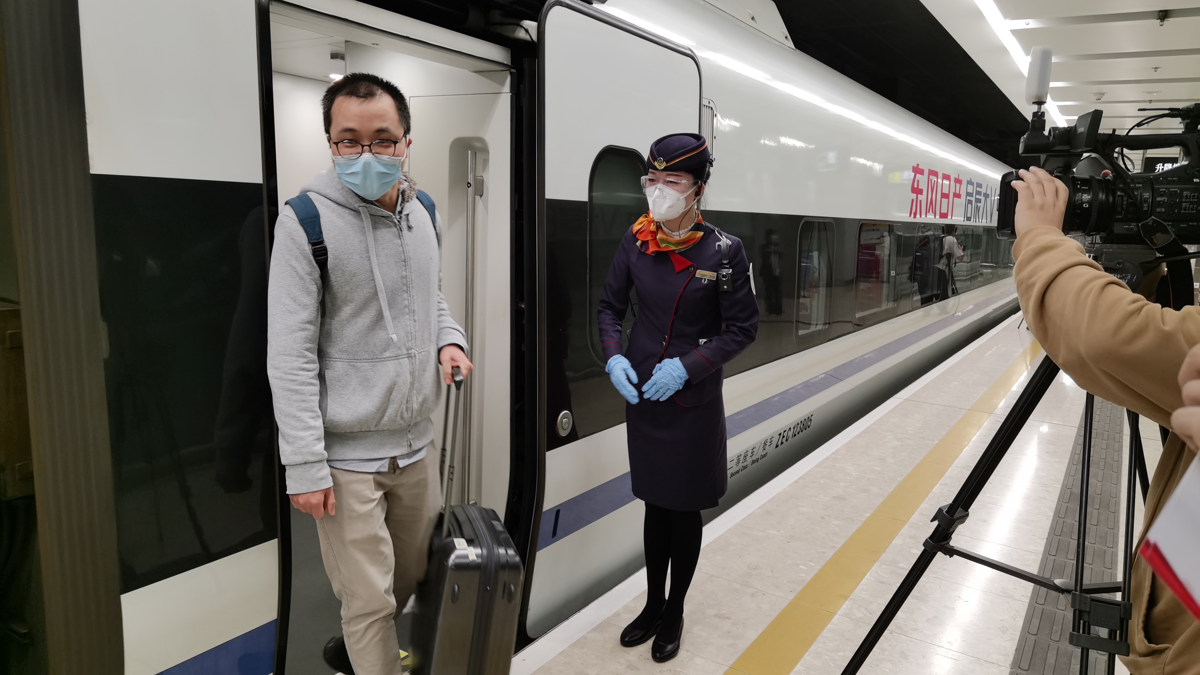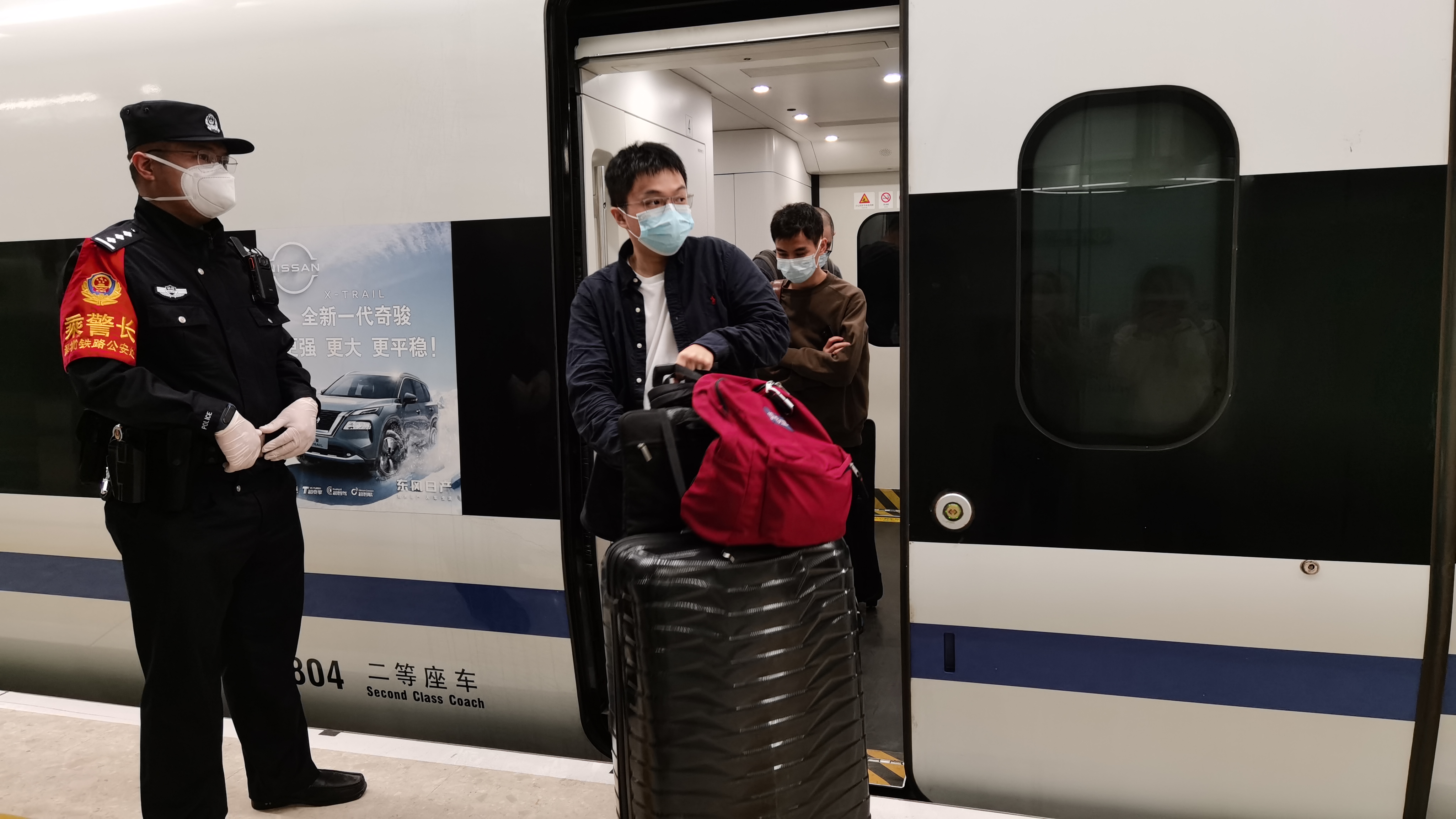 雖然旅途不免疲勞,他還是興奮地告訴記者,自己在香港工作,從事金融行業。受疫情影響,上次回浙江老家還在2020年。當時跨境高鐵已經停運,只能乘飛機往返。今年1月8日,深港恢復正常通關。1月9日他就從深圳灣口岸過關,經深圳回老家探望父母。一周後,得知跨境高鐵恢復運行,特意買了首趟列車車票,返回香港。春運期間,由於紅眼高鐵的開行,在深圳北站轉車銜接也很方便。他表示,從深圳到香港高鐵只要十幾分鐘,往來十分便捷,心理上感覺自己離父母又近了許多。