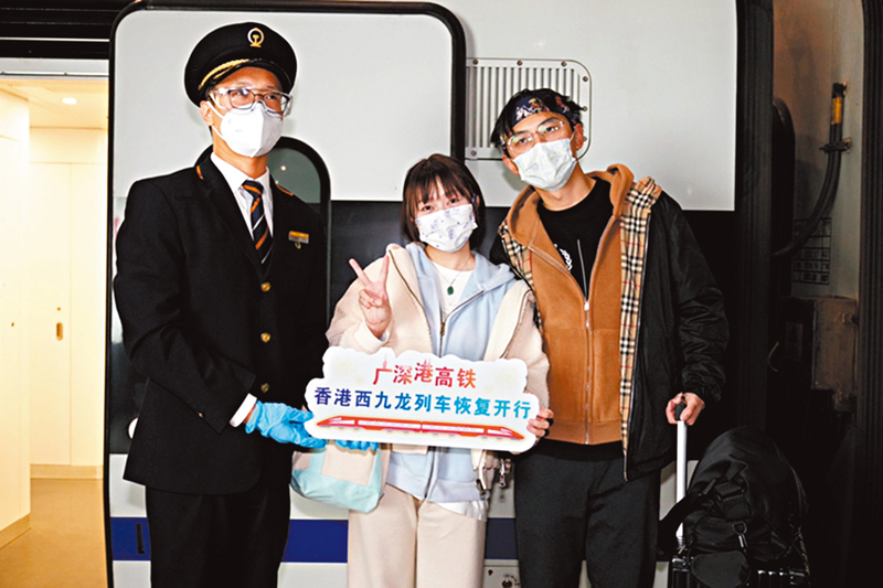 1月15日上午7點24分,深圳北至香港西九龍首趟列車G5607正式發車。經過18分鐘的行駛後,於7點42分抵達香港西九龍站。在港工作的內地商務人士朱先生早上剛剛從寧波乘坐高鐵抵達深圳北站,隨即登上了深圳北前往香港西九龍的列車。雖然旅途不免疲勞,他還是興奮地告訴香港文匯報記者,自己在香港中環從事金融工作,受疫情影響,上次回浙江老家還在2020年。當時跨境高鐵已經停運,只能乘飛機往返。今年1月8日,深港恢復正常通關。1月9日他就從深圳灣口岸過關,經深圳回老家探望父母。一周後,得知跨境高鐵恢復運行,特意買了首趟列車車票,返回香港。「原先我打算從浙江買機票飛香港的,但是知道高鐵恢復通車後,我就退掉了機票,改乘高鐵,這樣更加方便。」