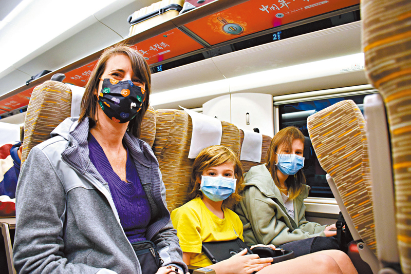 在座位上,卡琳娜和友人聊天,一對兒女靠着車窗玩iPad和聽音樂,其樂融融。卡琳娜在中國內地工作8年了,是廣州一所學校的校長。3年來,香港增添了很多新景點,尤其是香港故宮文化博物館,讓卡琳娜很嚮往。這次趁着寒假,恰好廣深港高鐵香港段恢復通車,她便帶着兩個孩子赴港旅遊,其間希望有時間去參觀一下故宮館,隨後會飛到泰國遊玩。