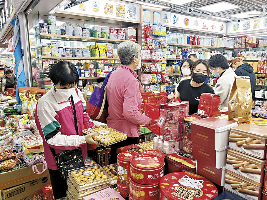 正在一商舖購物的劉先生也表示,他來港貨店買了四五百元人民幣年貨,主要是朱古力、糖果和開心果等,因為今年他們一家仍在深圳過年,準備將這些年貨快遞回江西老家,讓父母品嘗一下港貨,「家人都挺喜歡港版朱古力和餅乾。」
