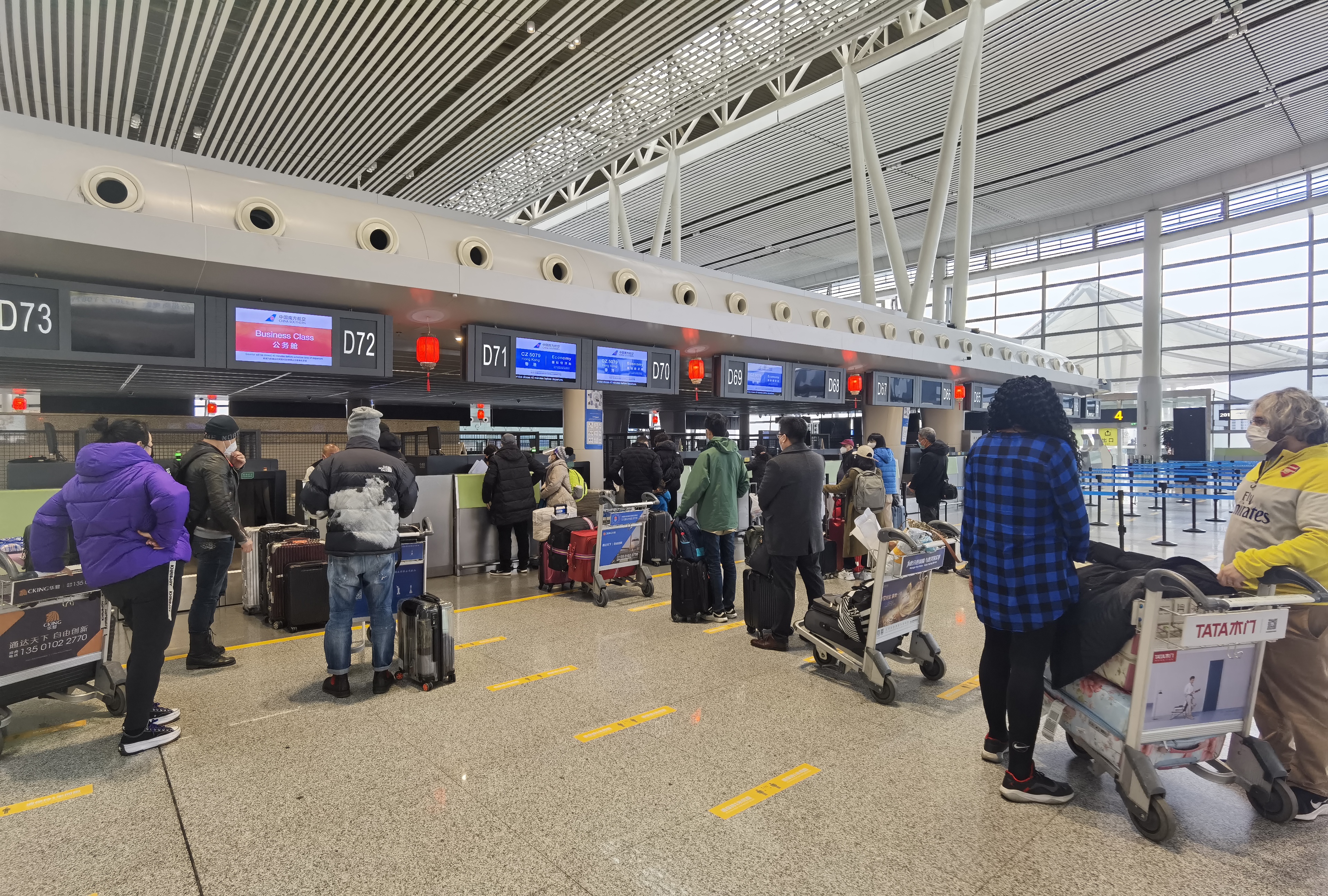 上午9點,記者在長沙黃花機場國際、港澳台出發大廳看到,航站樓內熙熙攘攘,拖着行李箱的旅客絡繹不絕,值機櫃枱前已排起了長隊,旅客們臉上洋溢着喜悅之情。不少旅客早早來到機場值機。來自香港的鄧善均在長沙瀏陽投資已經很多年了,疫情來臨之前,他每個月都要往返長沙和香港,但因為疫情的原因,他已經三年沒有來過內地,這次通關後,他輾轉杭州來到長沙,鄧先生表示:「我沒想到這麼快就可以從長沙直飛香港,可以輕鬆回家過年,以後再過來也方便很多。」